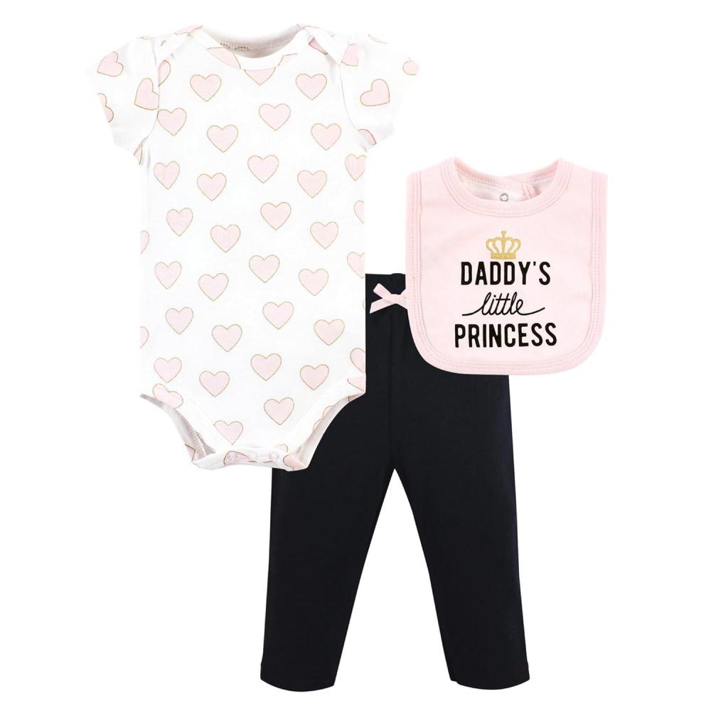 Hudson Baby Unisex Baby Cotton Bodysuit, Pant and Bib Set, Peace Love Flowers, Newborn(Daddys Little Princess)
