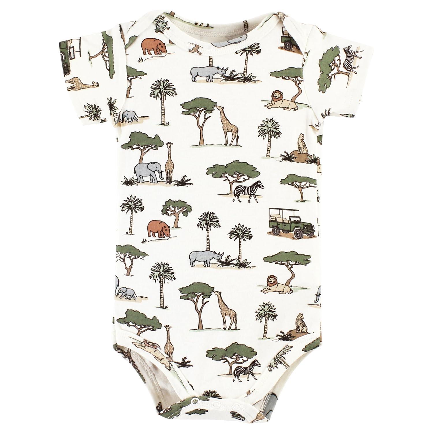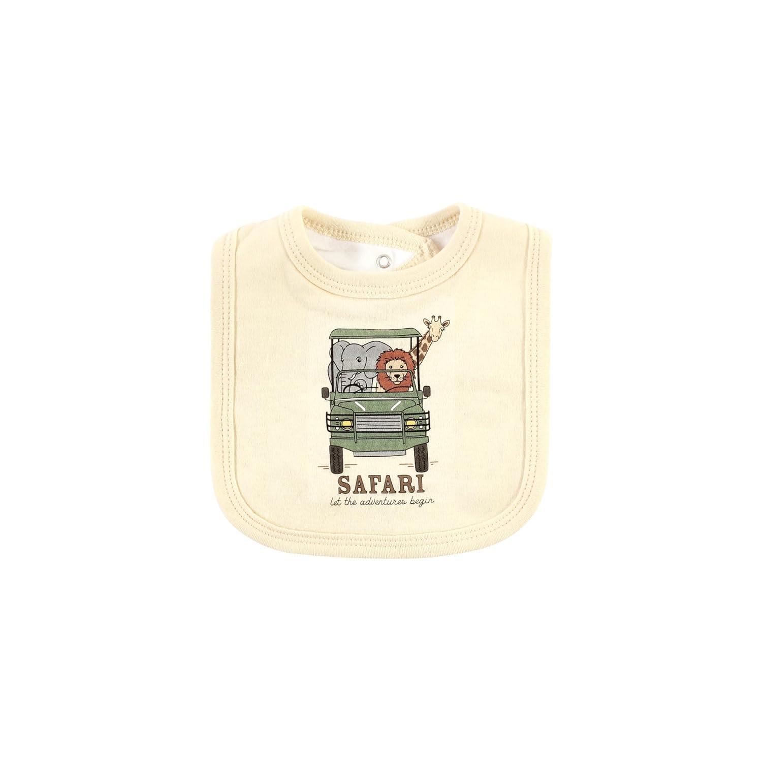 Hudson Baby Unisex Baby Cotton Bodysuit, Pant and Bib Set, Peace Love Flowers, Newborn(Going on Safari)