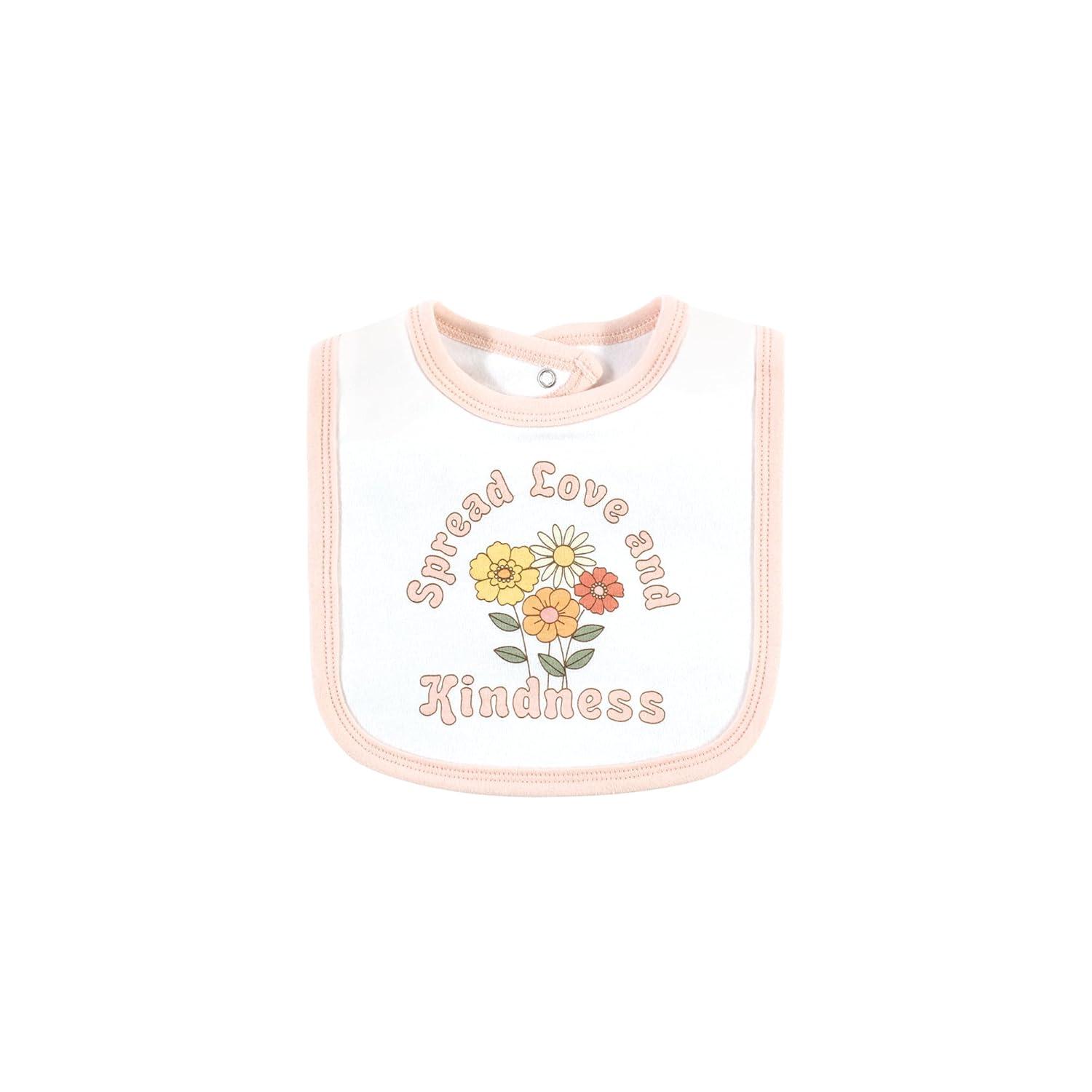 Hudson Baby Unisex Baby Cotton Bodysuit, Pant and Bib Set, Peace Love Flowers, Newborn(Peace Love Flowers)
