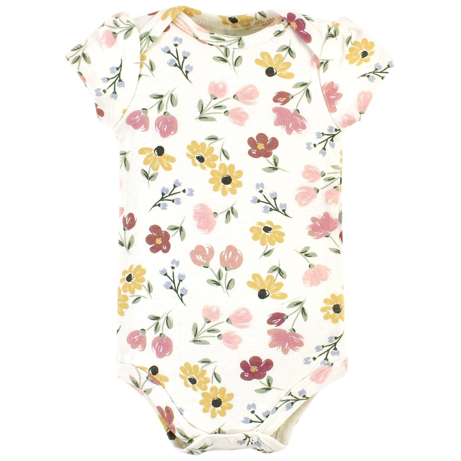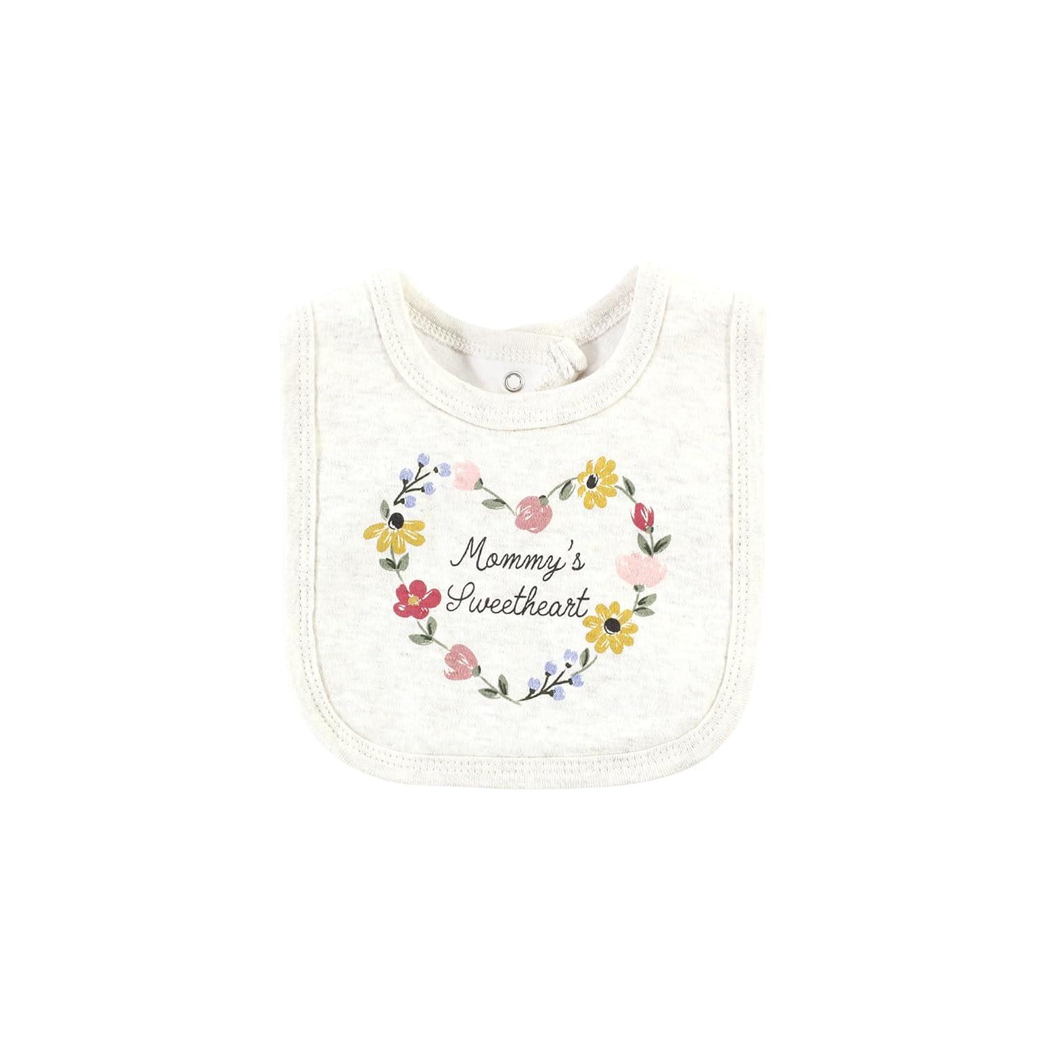 Hudson Baby Unisex Baby Cotton Bodysuit, Pant and Bib Set, Peace Love Flowers, Newborn(Soft Painted Floral)