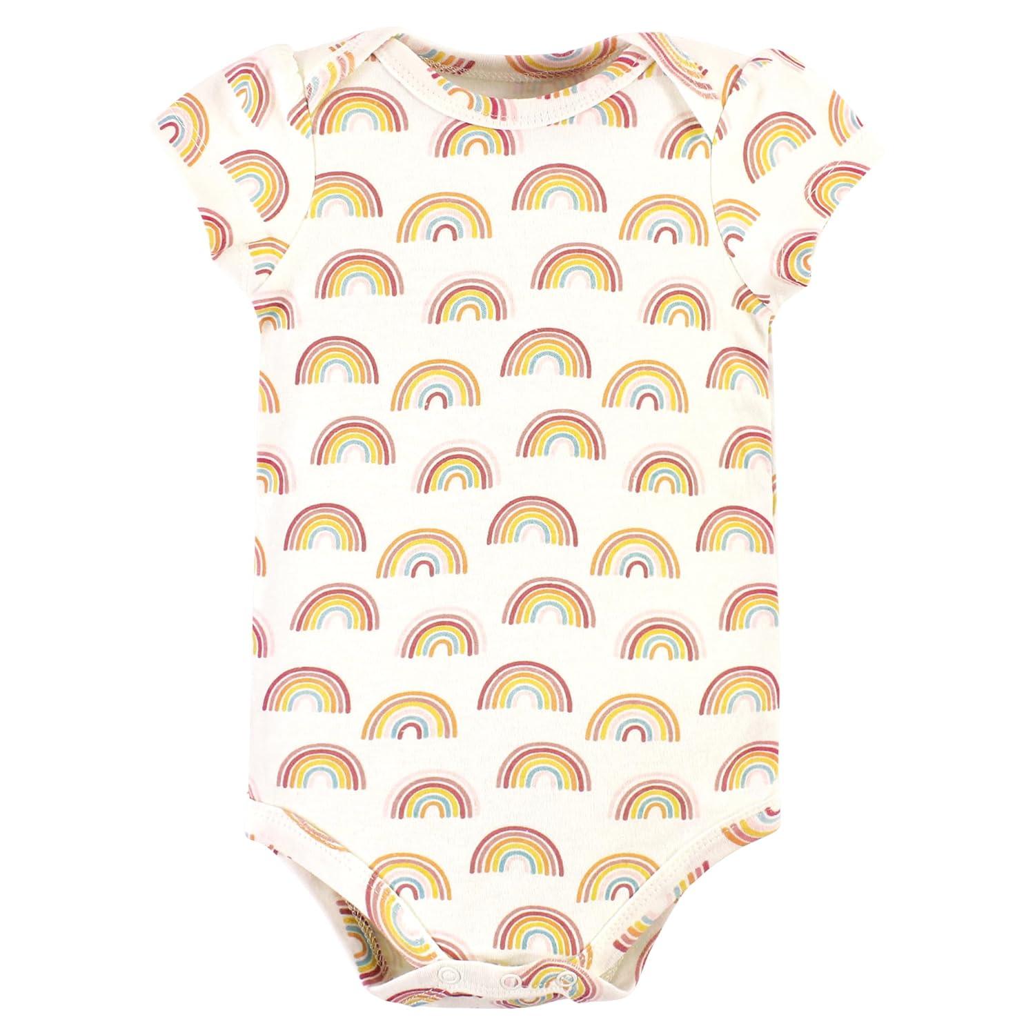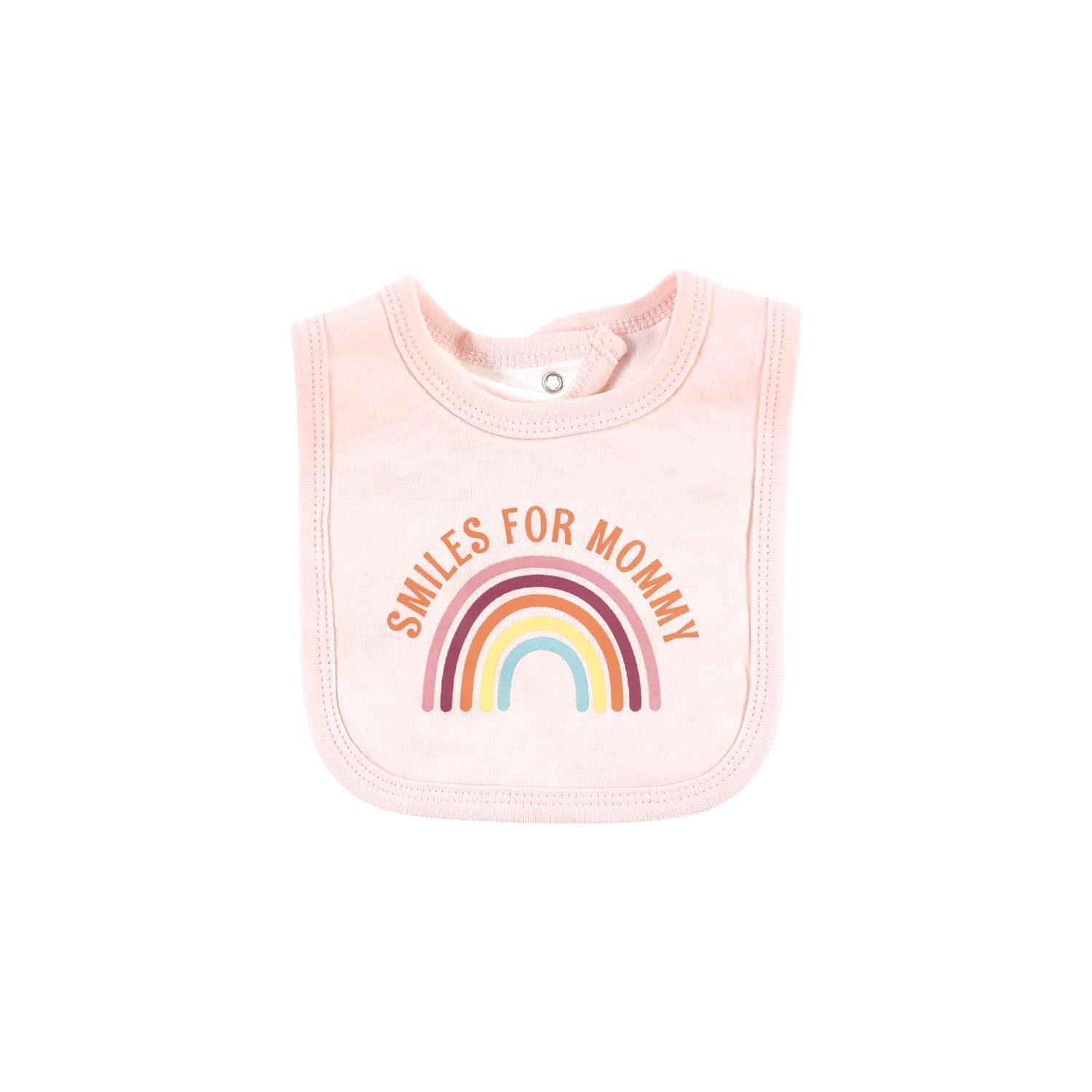 Hudson Baby Unisex Baby Cotton Bodysuit, Pant and Bib Set, Peace Love Flowers, Newborn(Sunshine Rainbows)