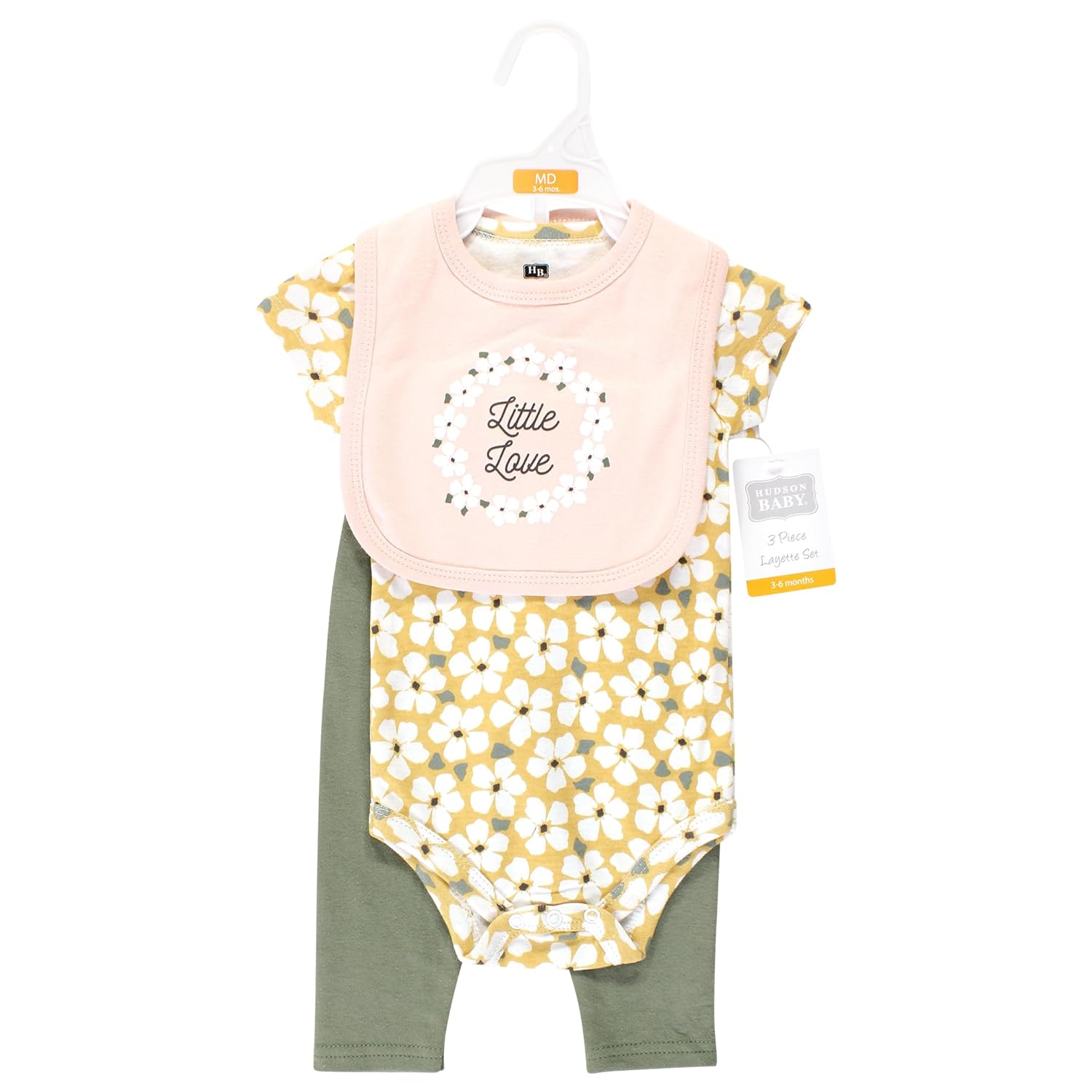 Hudson Baby Unisex Baby Cotton Bodysuit, Pant and Bib Set, Sage Floral Wreath, 0-3 Months(Hudson Baby Unisex Baby Cotton Bodysuit, Pant and Bib Set, Sage Floral Wreath, 0-3 Months)