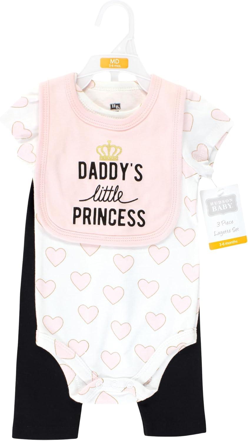 Hudson Baby Unisex Baby Cotton Bodysuit, Pant and Bib Set(Daddys Little Princess)