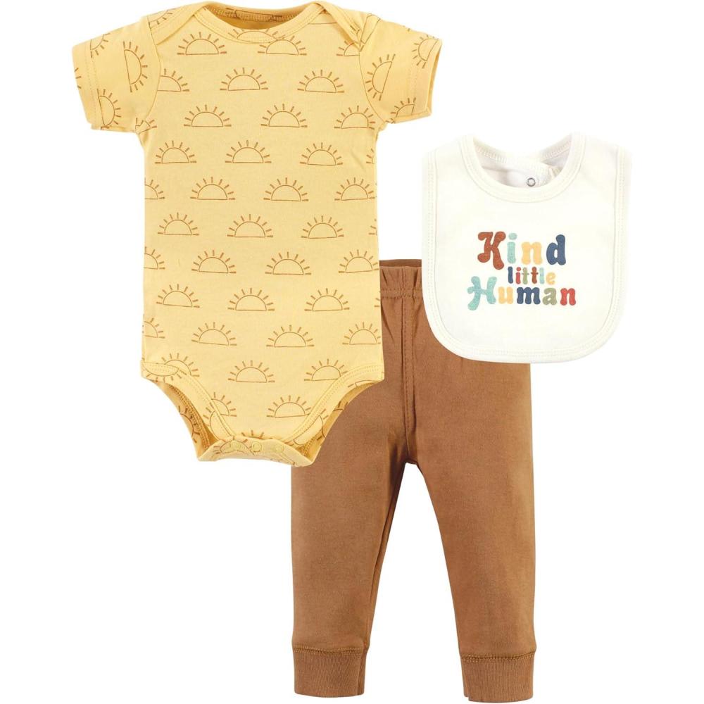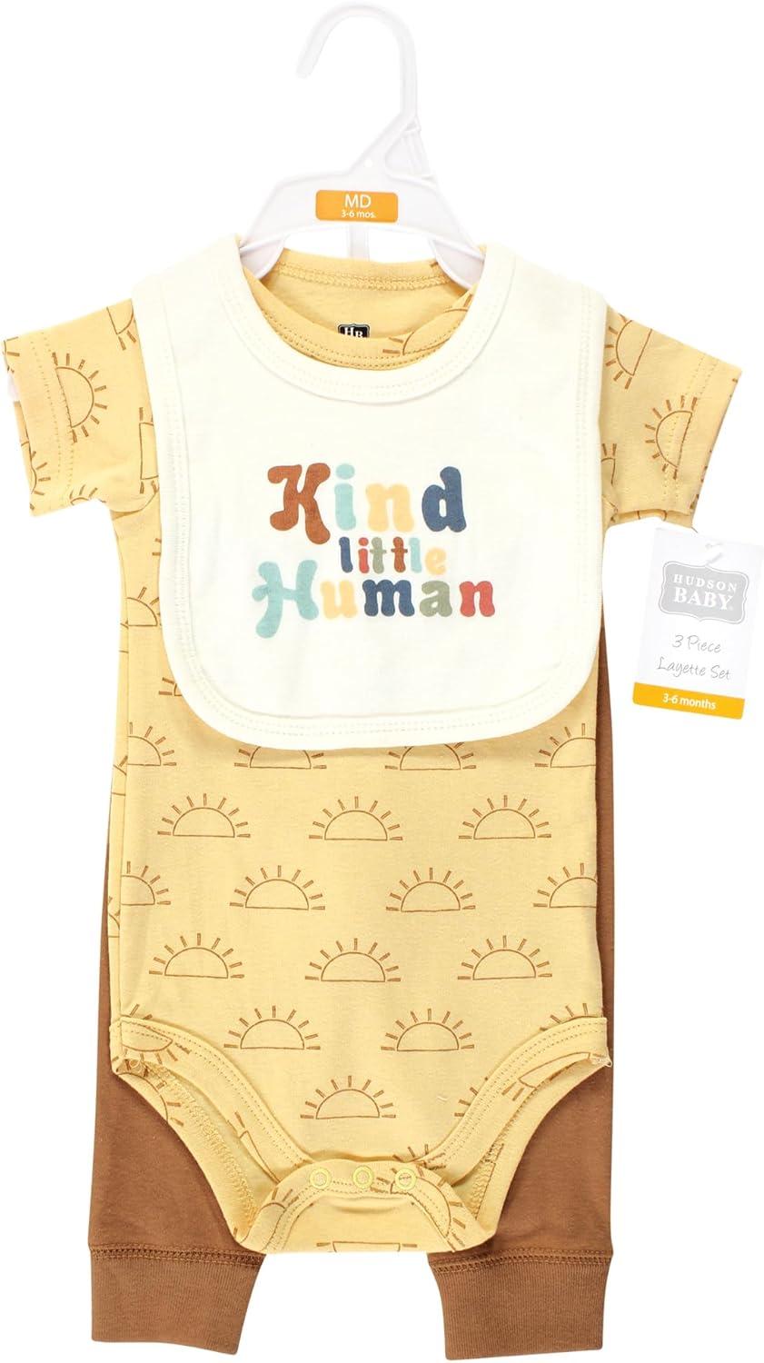 Hudson Baby Unisex Baby Cotton Bodysuit, Pant and Bib Set(Kind Human)