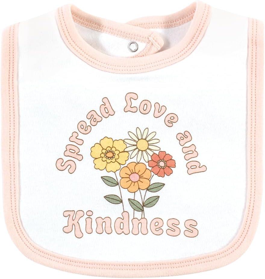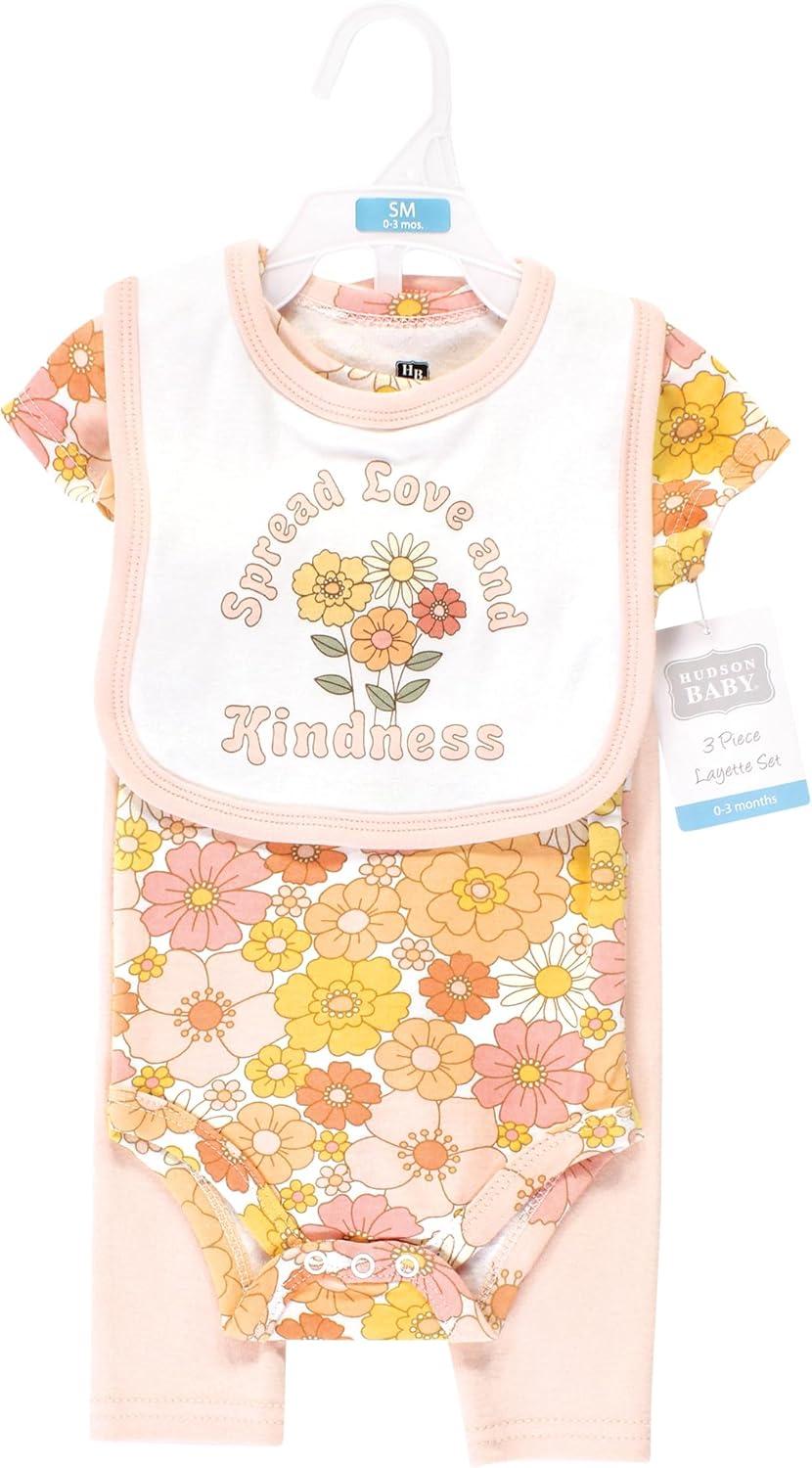 Hudson Baby Unisex Baby Cotton Bodysuit, Pant and Bib Set(Peace Love Flowers)