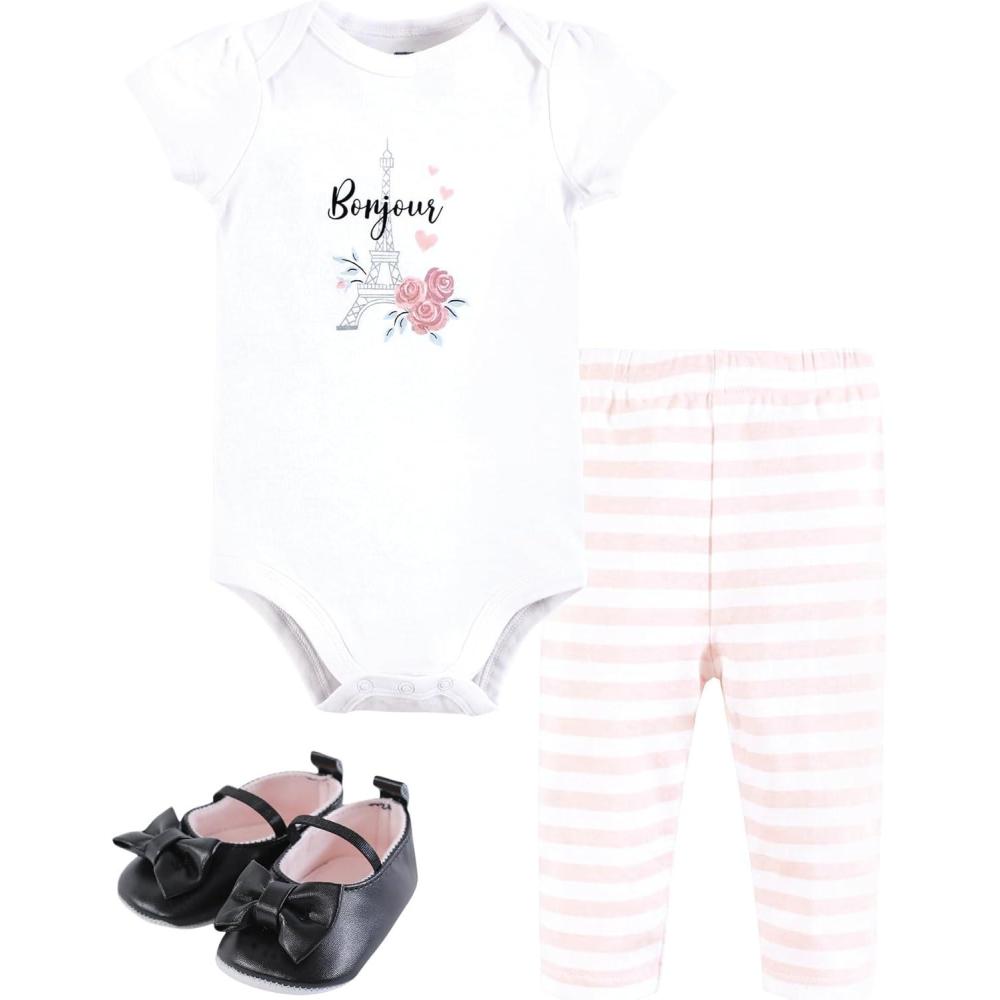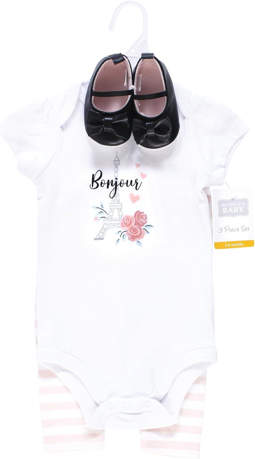 Hudson Baby Unisex Baby Cotton Bodysuit, Pant and Shoe Set(Bonjour Paris)