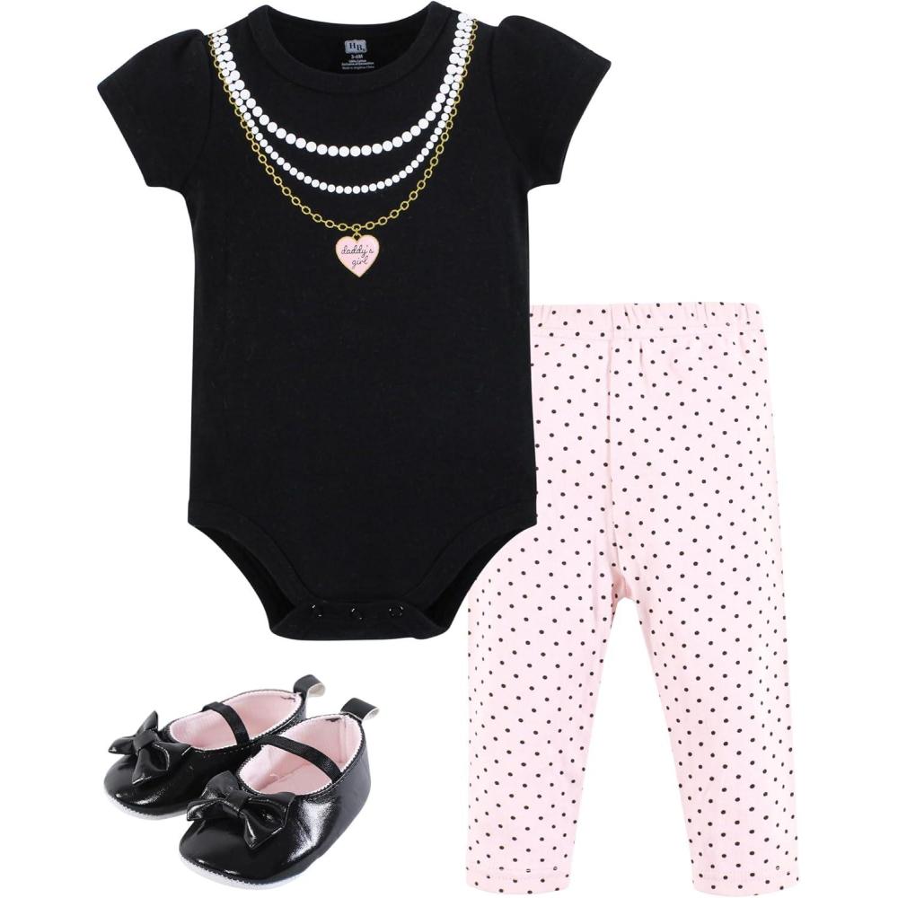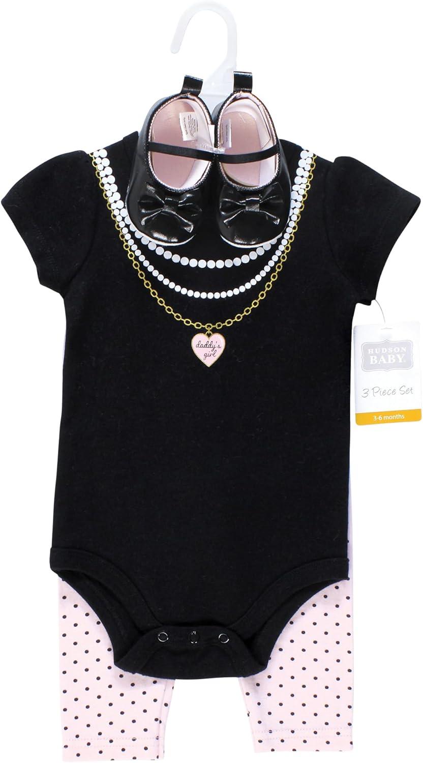 Hudson Baby Unisex Baby Cotton Bodysuit, Pant and Shoe Set(Daddys Girl Necklace)