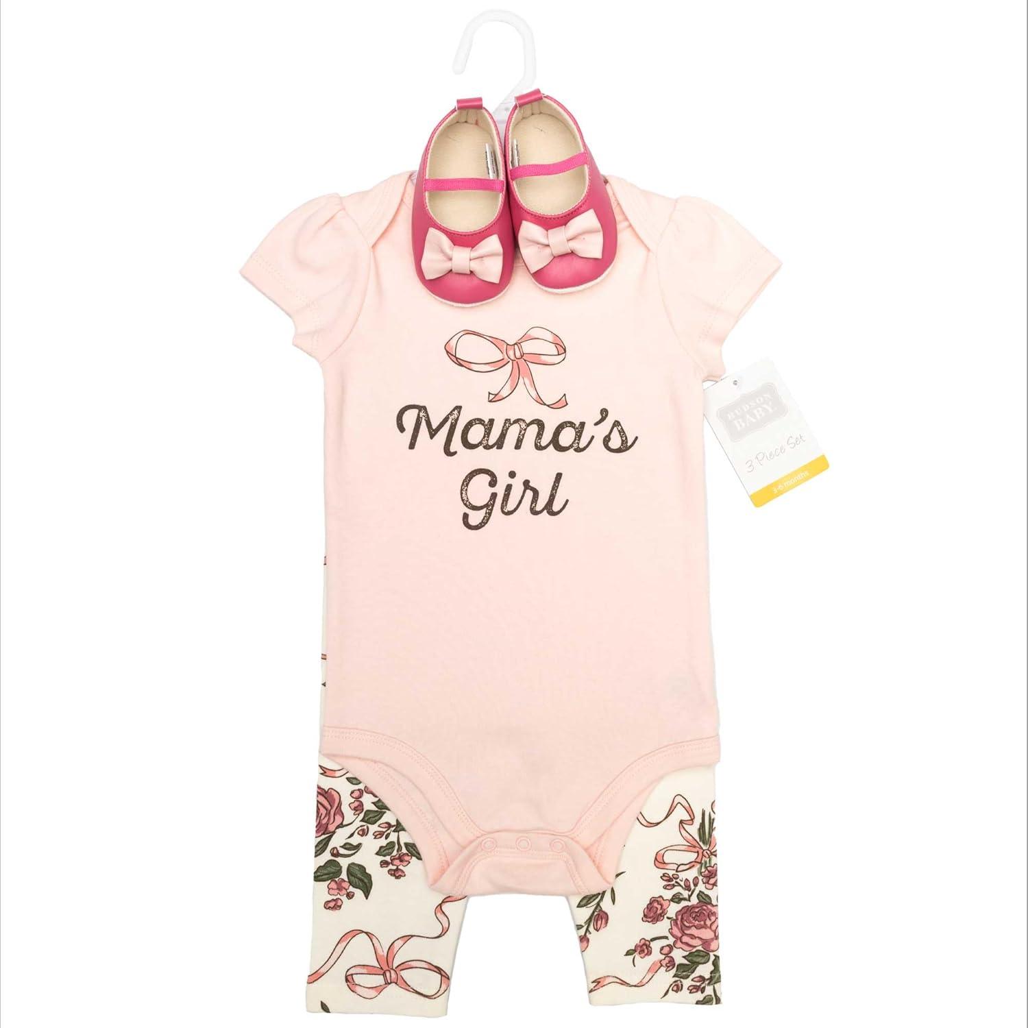 Hudson Baby Unisex Baby Cotton Bodysuit, Pant and Shoe Set(Floral Bow)