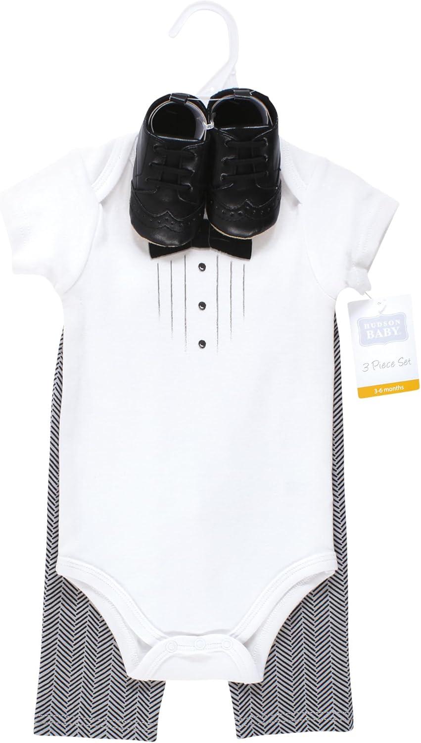 Hudson Baby Unisex Baby Cotton Bodysuit, Pant and Shoe Set(Tweed Tux)