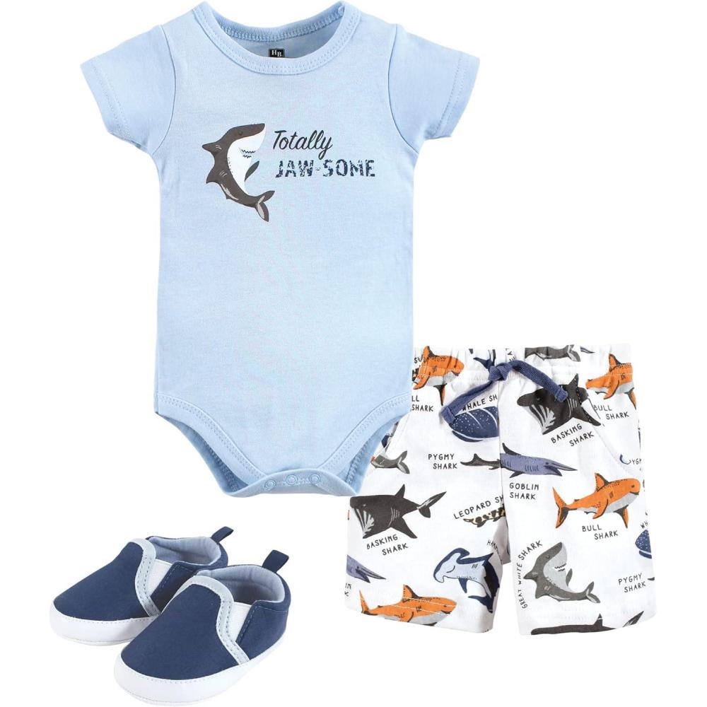 Get more for your money with our exclusive bundle deals on Hudson Baby Unisex Baby Cotton Bodysuit, Shorts and Shoe Set(Jawsome Shark) and accessories.