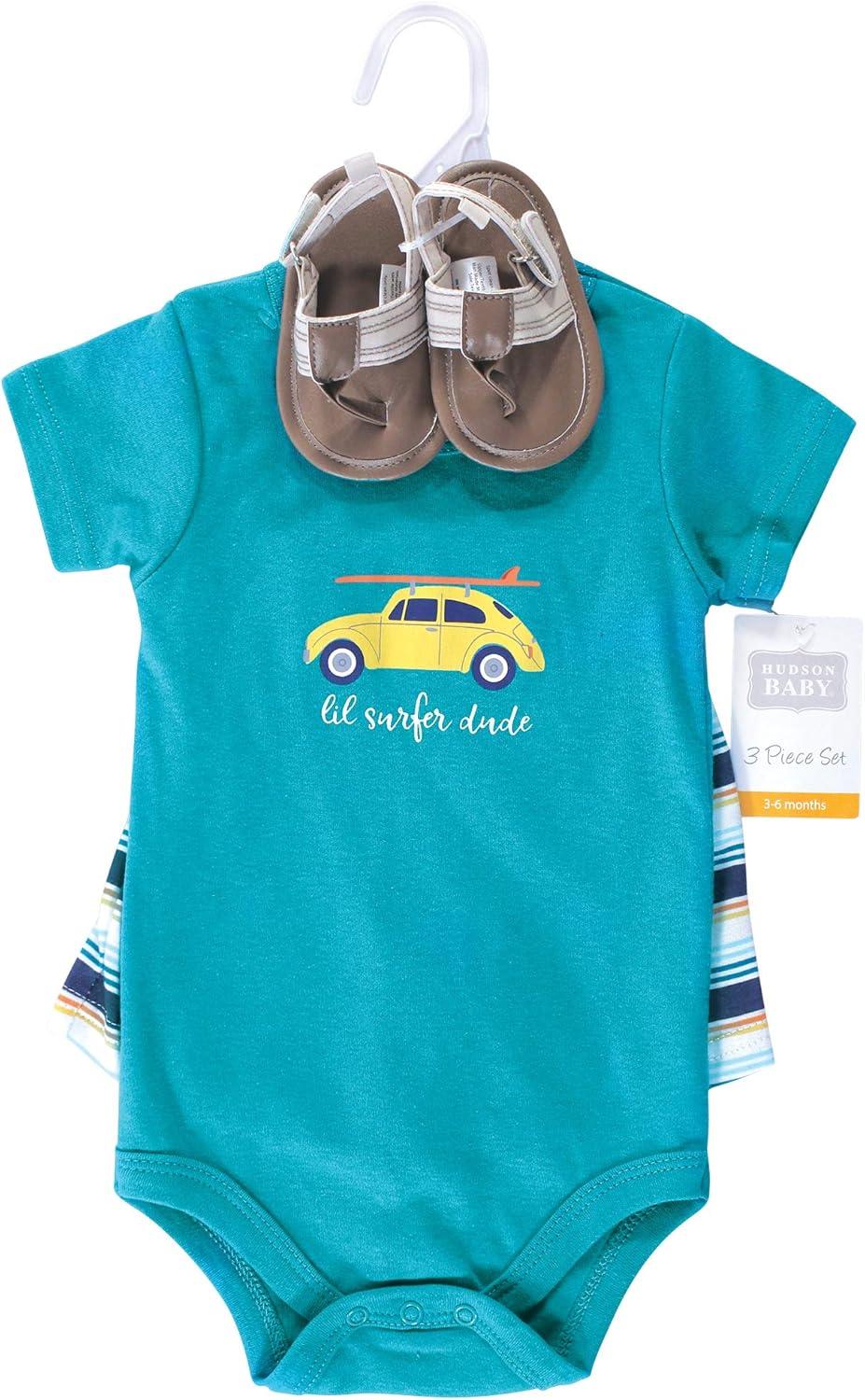 Hudson Baby Unisex Baby Cotton Bodysuit, Shorts and Shoe Set