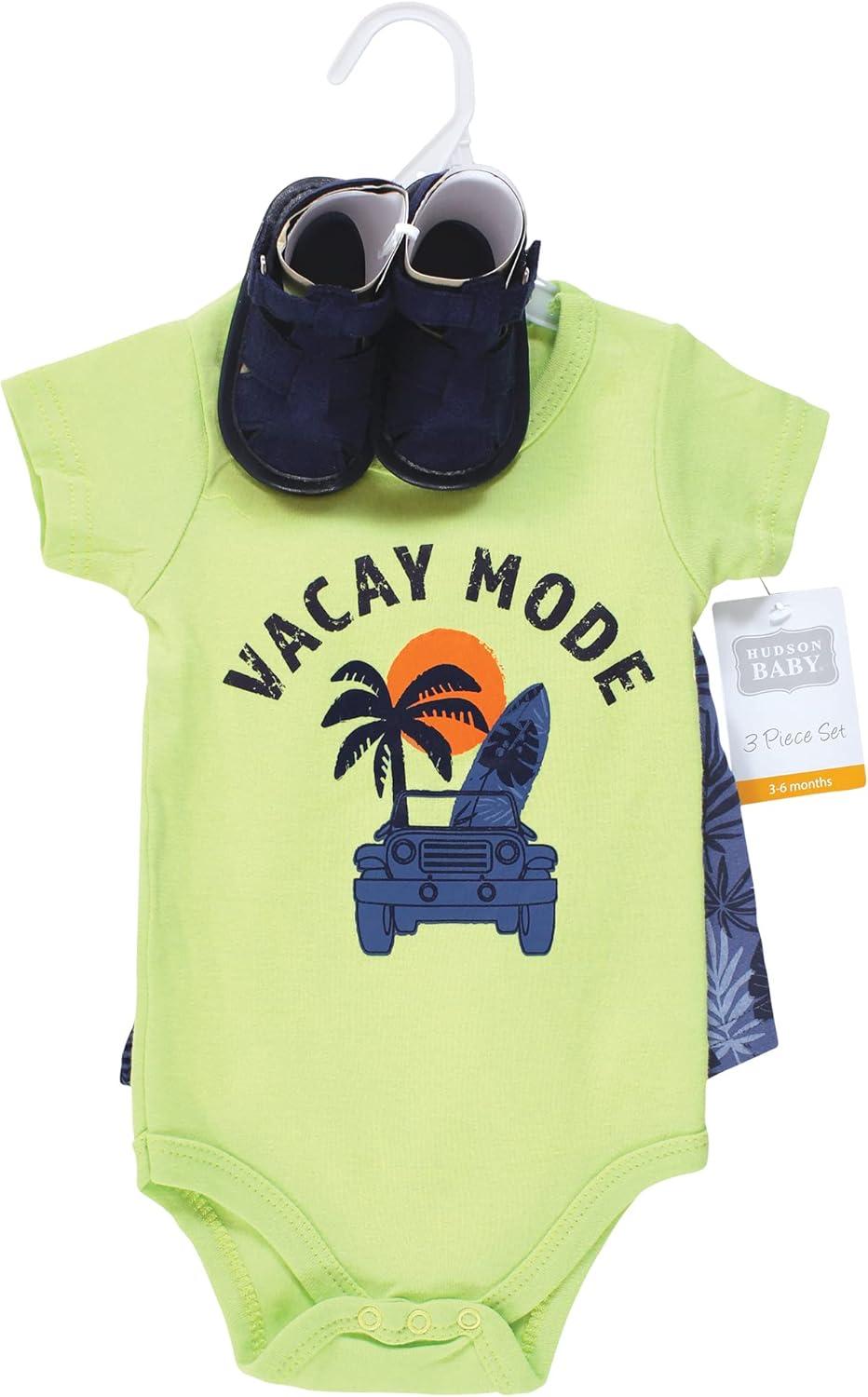 Hudson Baby Unisex Baby Cotton Bodysuit, Shorts and Shoe Set