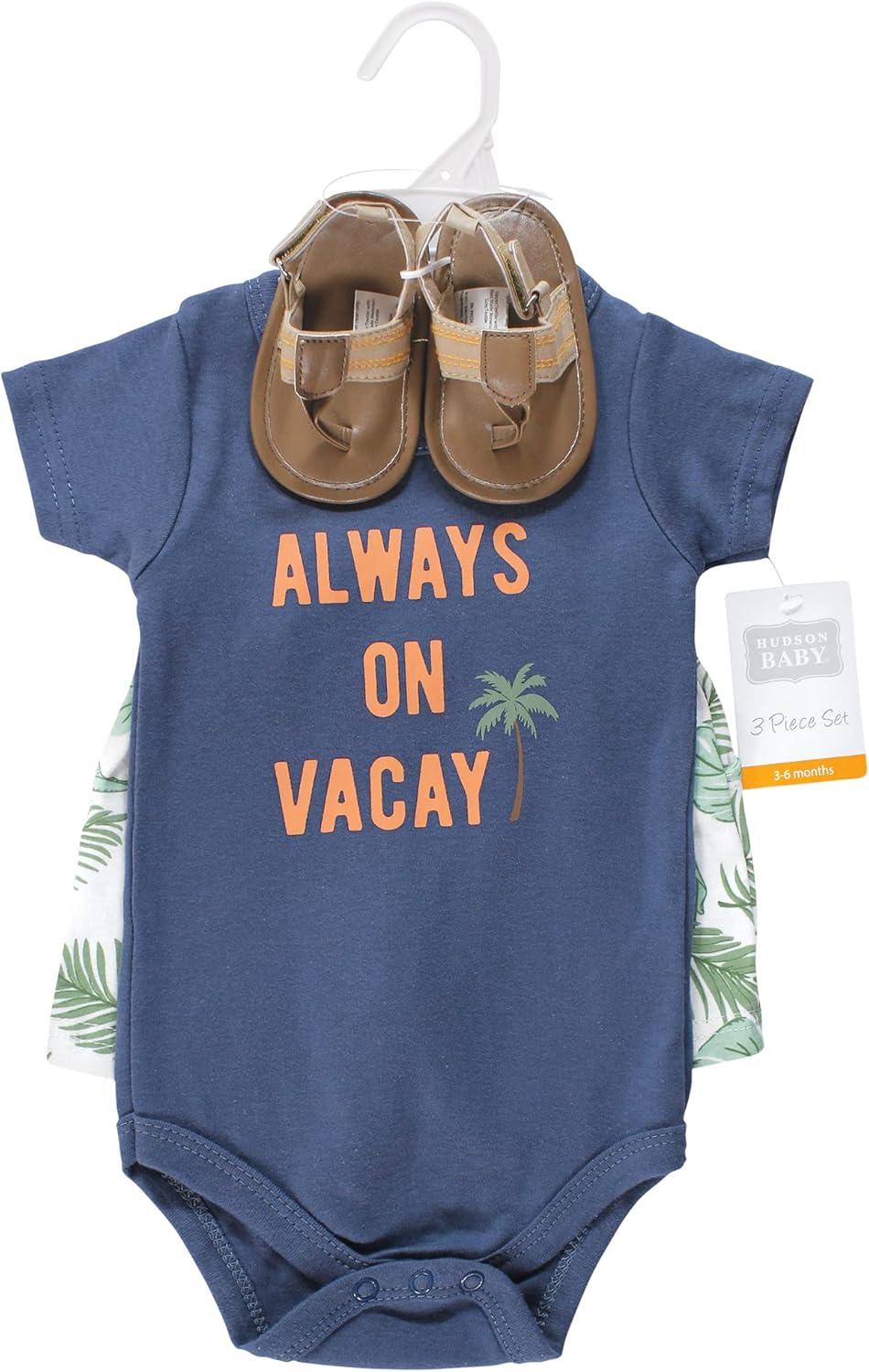 Hudson Baby Unisex Baby Cotton Bodysuit, Shorts and Shoe Set(Vacay)