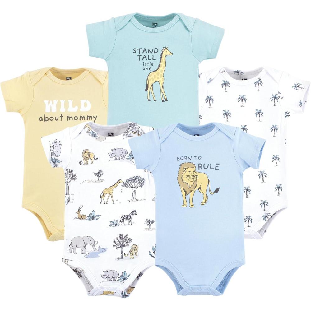 Hudson Baby Unisex Baby Cotton Bodysuits 5-pack(Boy Safari World)