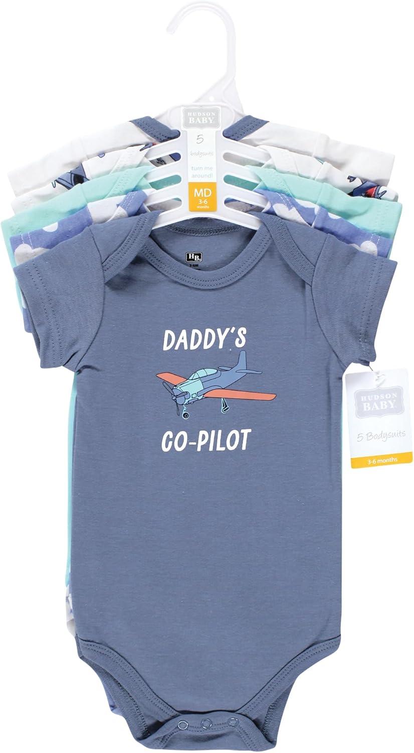 Hudson Baby Unisex Baby Cotton Bodysuits 5-pack(Fly High)