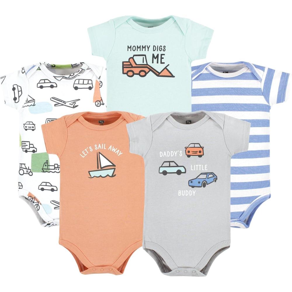 Hudson Baby Unisex Baby Cotton Bodysuits 5-pack(Fun Transportation)