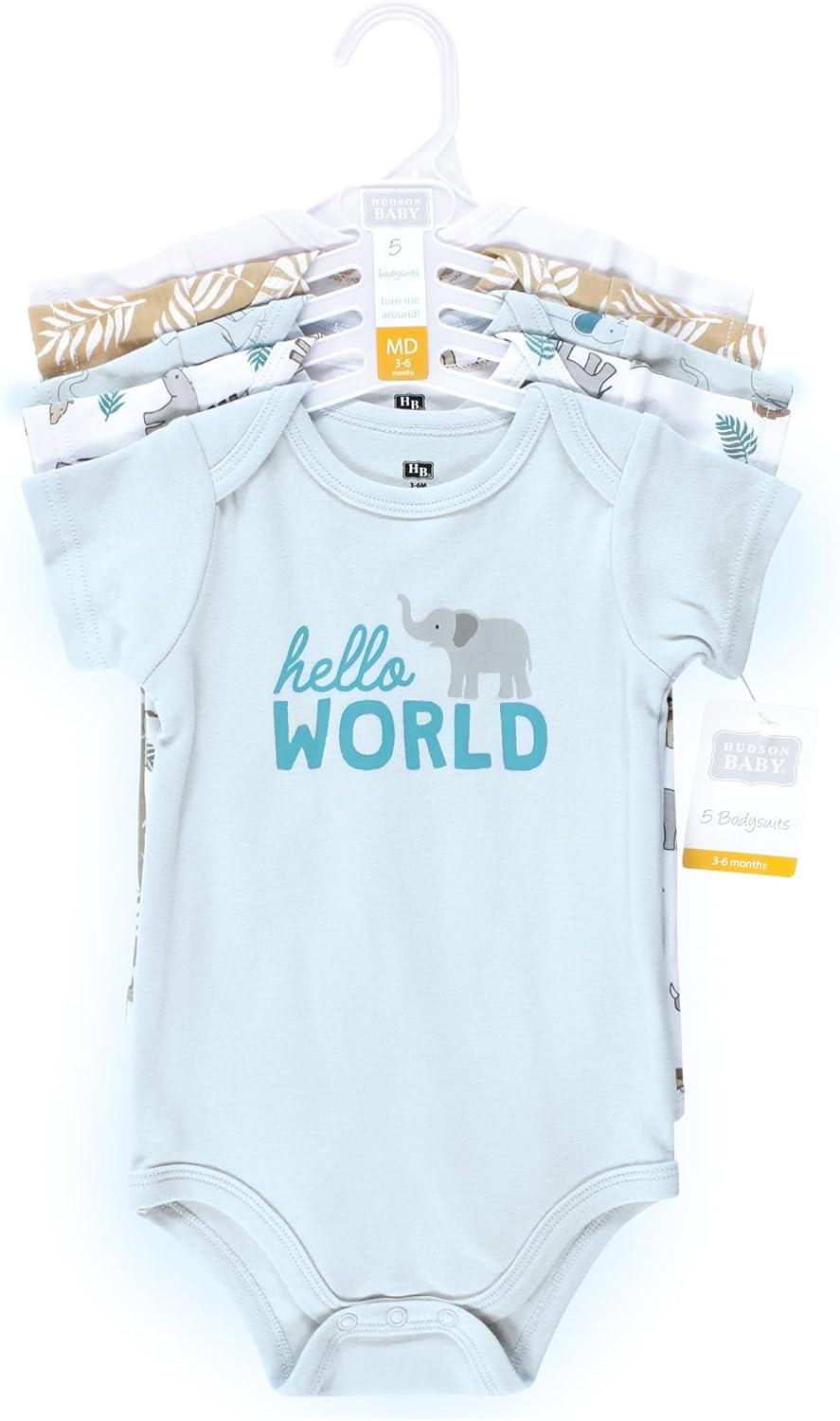 Hudson Baby unisex-baby Cotton Bodysuits 5-pack(Hello World Safari)
