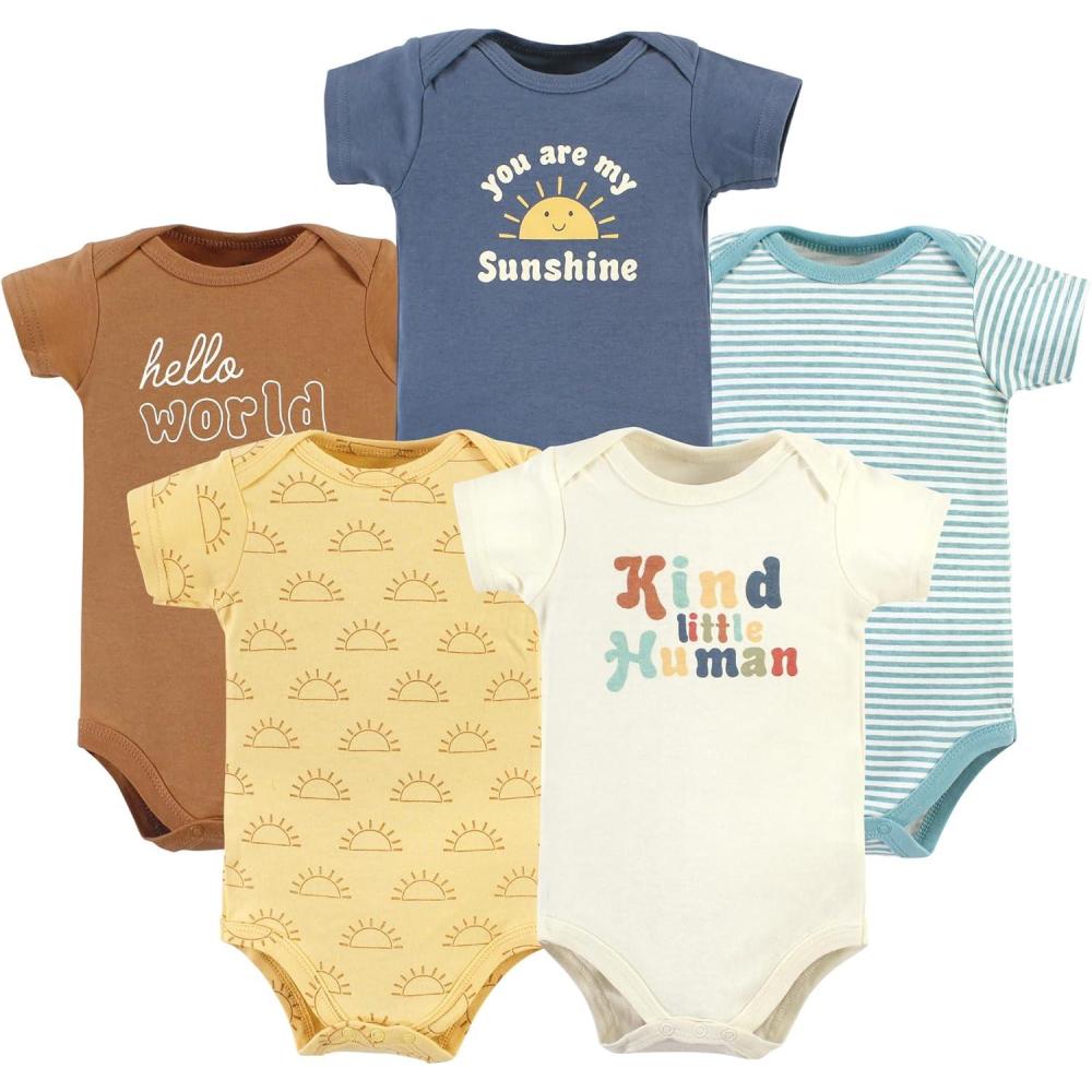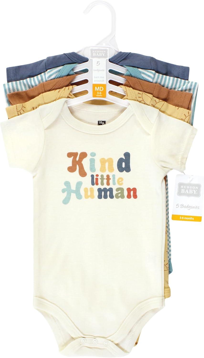 Hudson Baby unisex-baby Cotton Bodysuits 5-pack(Kind Human)
