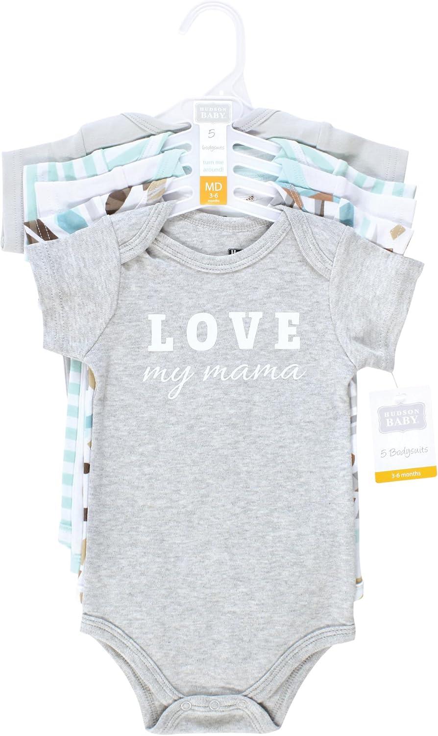 Hudson Baby unisex-baby Cotton Bodysuits 5-pack(Neutral Safari World)