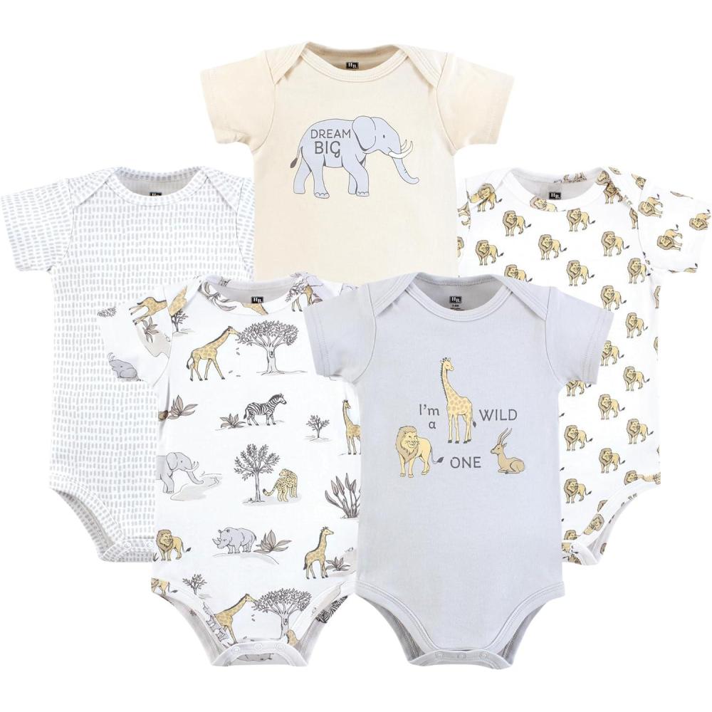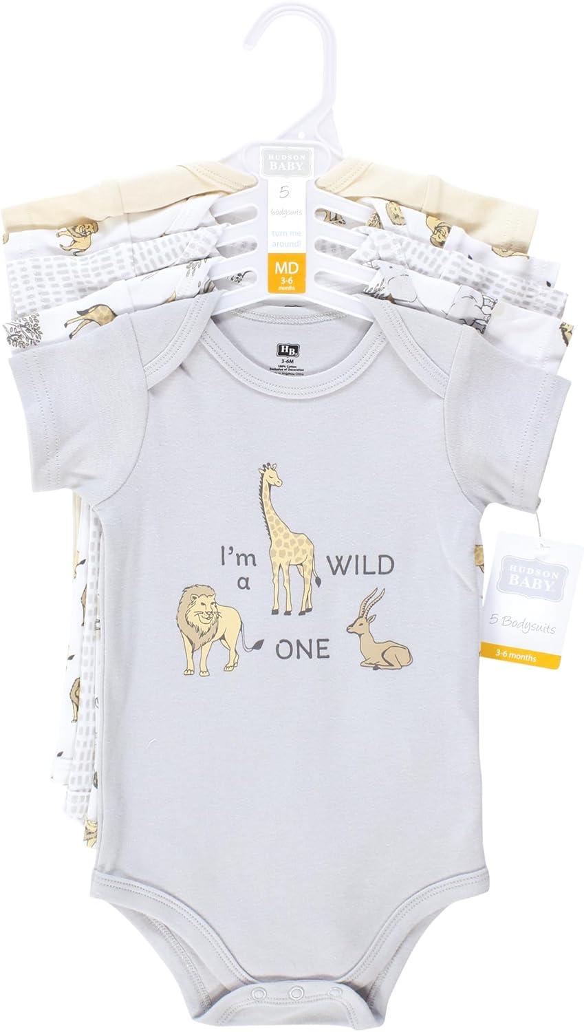 Hudson Baby unisex-baby Cotton Bodysuits 5-pack(Neutral Safari World)