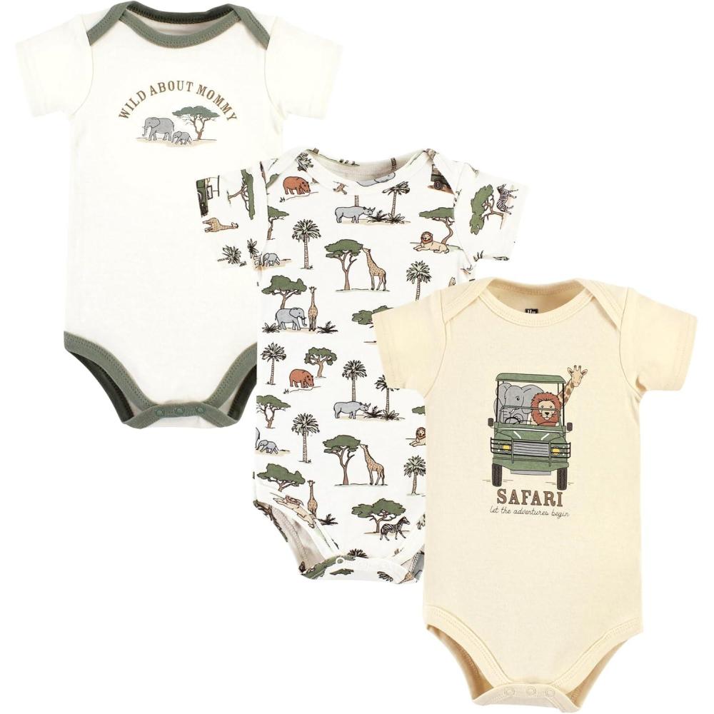 Hudson Baby Unisex Baby Cotton Bodysuits, Going On Safari 3-Pack, Newborn