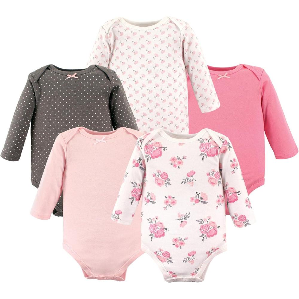 Hudson Baby Unisex Baby Cotton Bodysuits(Basic Pink Floral)