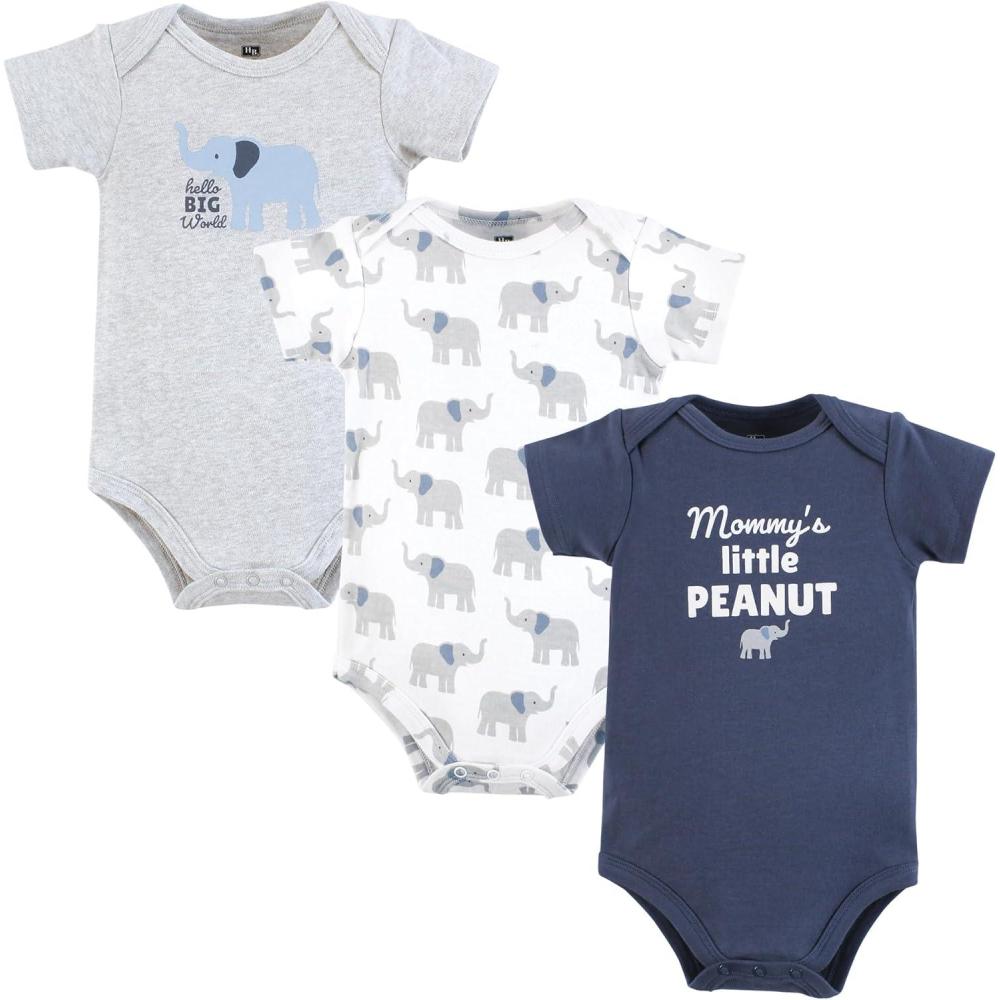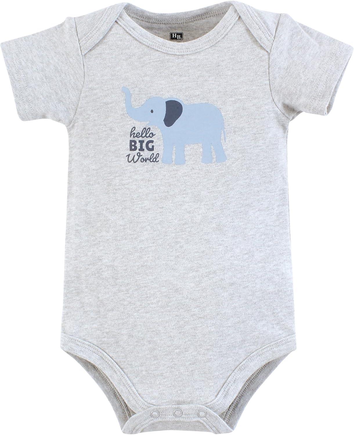 Hudson Baby Unisex Baby Cotton Bodysuits(Blue Elephant Peanut)