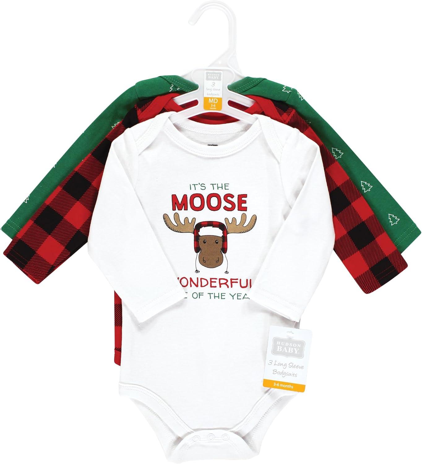 Hudson Baby Unisex Baby Cotton Bodysuits(Buffalo Christmoose)