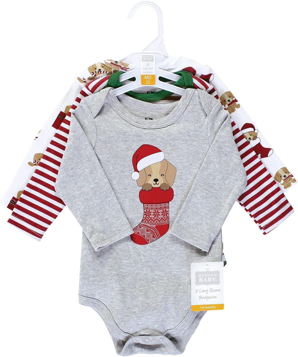 Hudson Baby Unisex Baby Cotton Bodysuits(Christmas Dog)