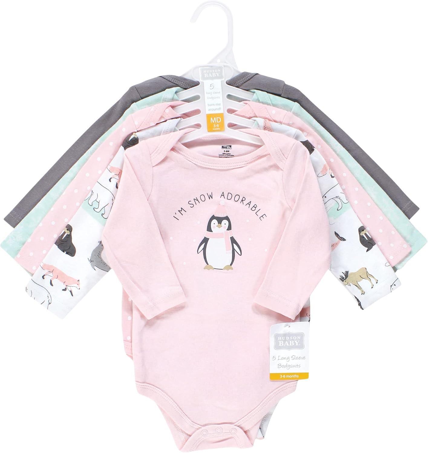 Hudson Baby Unisex Baby Cotton Bodysuits(Girl Arctic Animals)