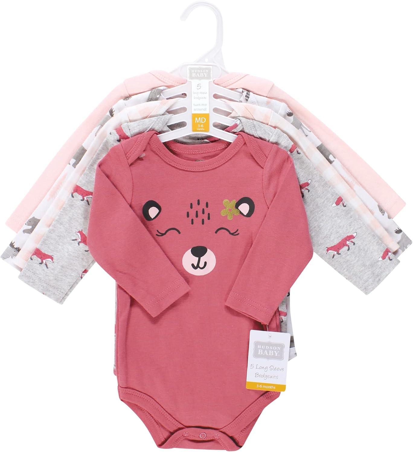 Hudson Baby Unisex Baby Cotton Bodysuits(Girl Woodland Animals)