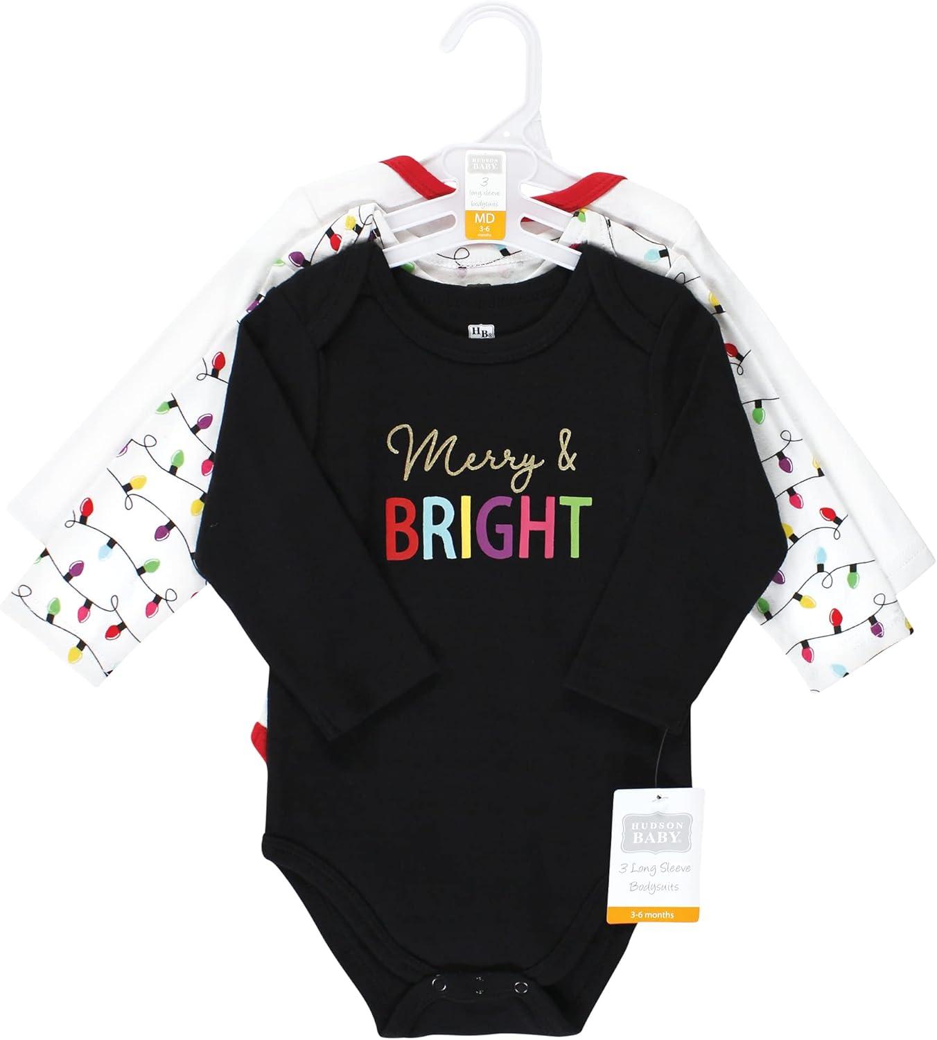Hudson Baby Unisex Baby Cotton Bodysuits(Merry and Bright)