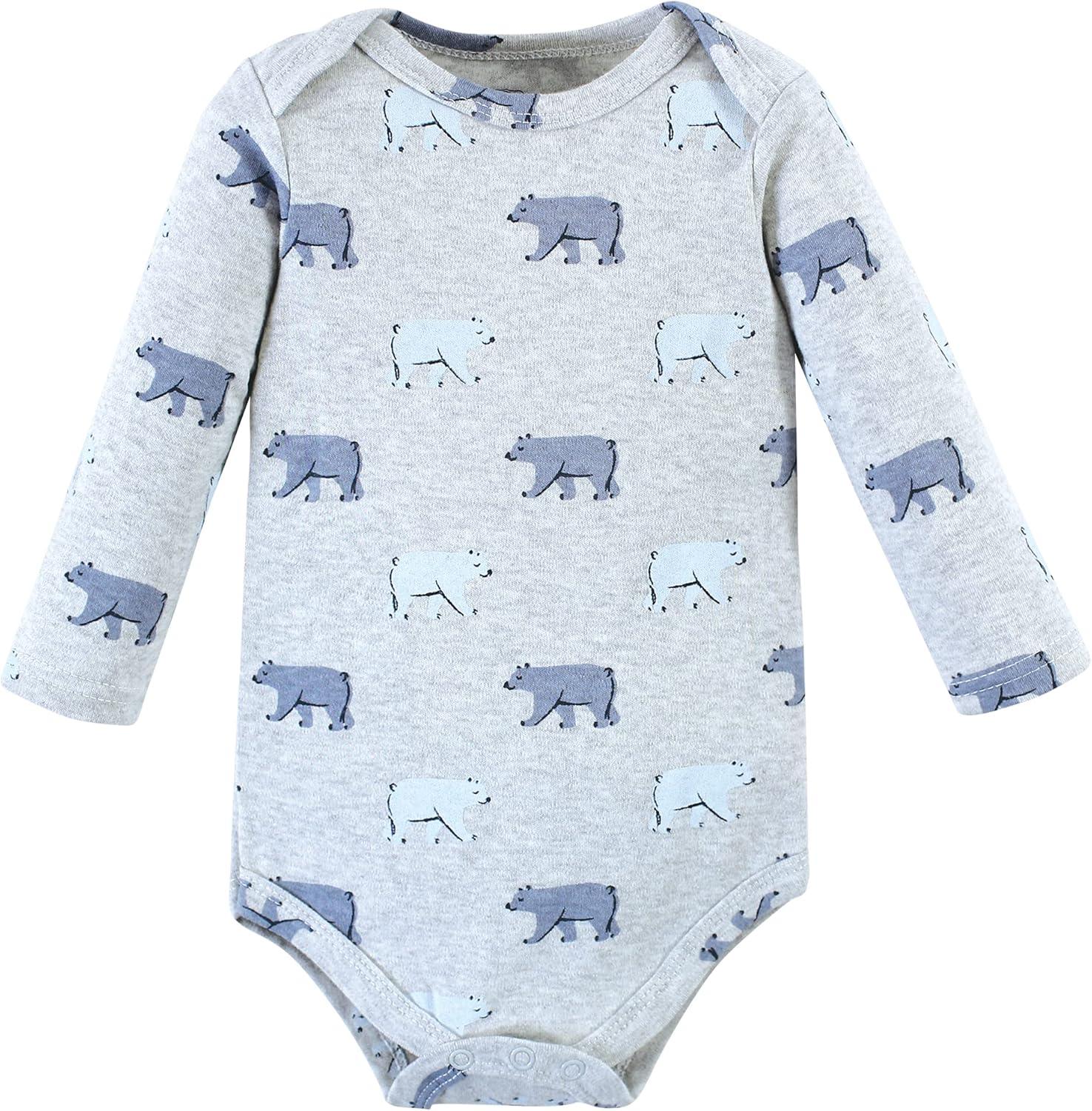 Hudson Baby long-sleeve bodysuits are an essential part of baby's wardrobe. Our bodysuits feature adorable prints, embroideries, stripes and solids and provide a comfortable base layer that's great for pairing with pants, shorts, or even wearing under outfits. Our bodysuits are comfortable and cozy for all-day, everyday wear for your little one.