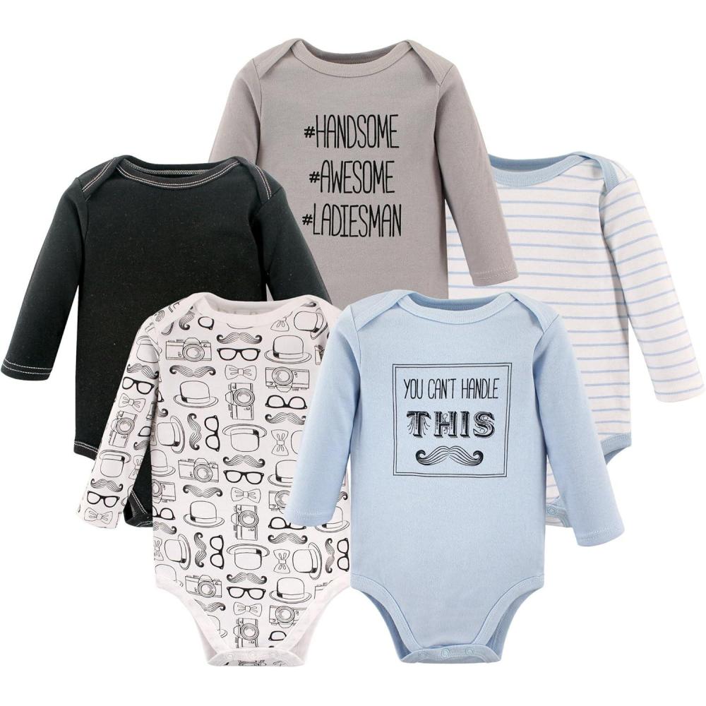 Hudson Baby long-sleeve bodysuits are an essential part of baby's wardrobe. Our bodysuits feature adorable prints, embroideries, stripes and solids and provide a comfortable base layer that's great for pairing with pants, shorts, or even wearing under outfits. Our bodysuits are comfortable and cozy for all-day, everyday wear for your little one.