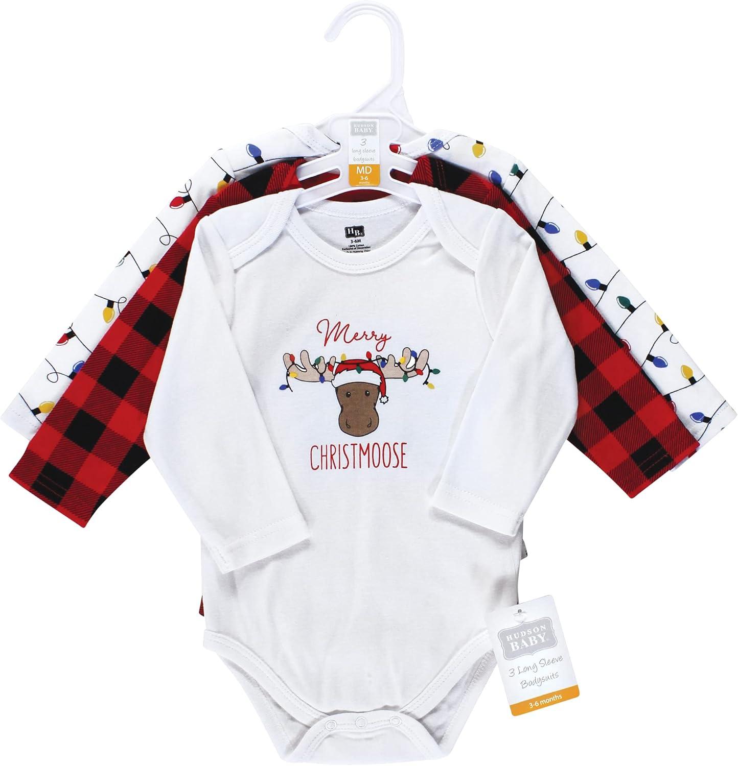 Hudson Baby Unisex Baby Cotton Bodysuits(Red Christmoose)