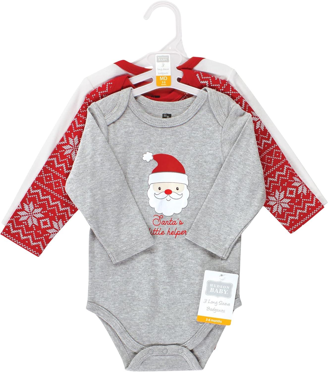 Hudson Baby Unisex Baby Cotton Bodysuits(Santa Reindeer)