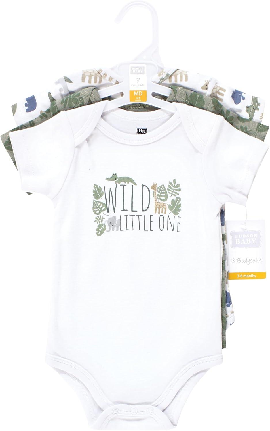 Hudson Baby Unisex Baby Cotton Bodysuits(Wild Leaf Safari)