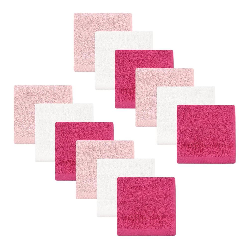 Hudson Baby Unisex Baby Cotton Bundle Washcloths, Basic White 24-Pack, 12×12 inches(Basic Pink 12-pack)