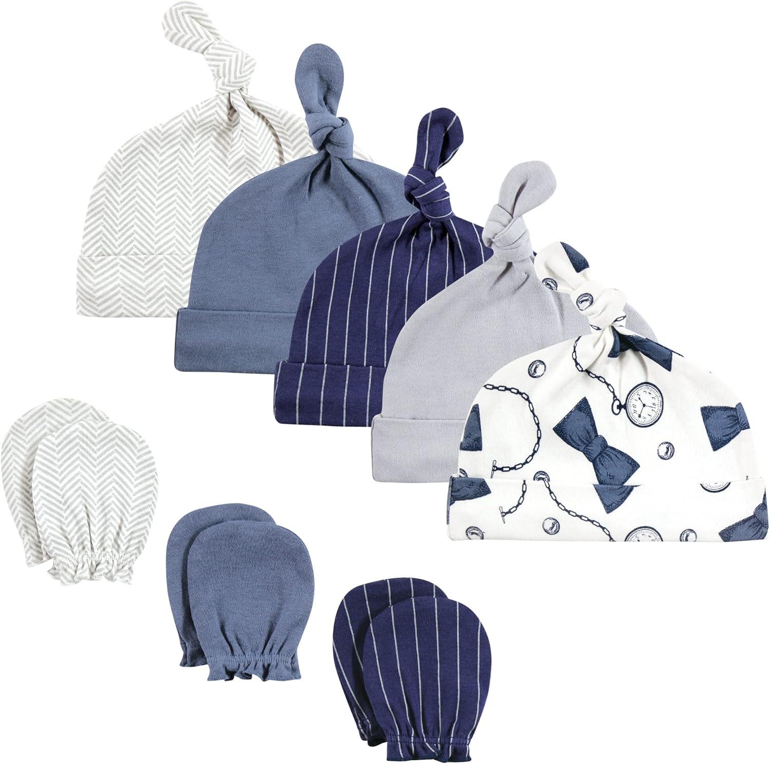 Hudson Baby Unisex Baby Cotton Cap and Scratch Mitten Bundle Set(Pocket Watch Vintage Little Man)
