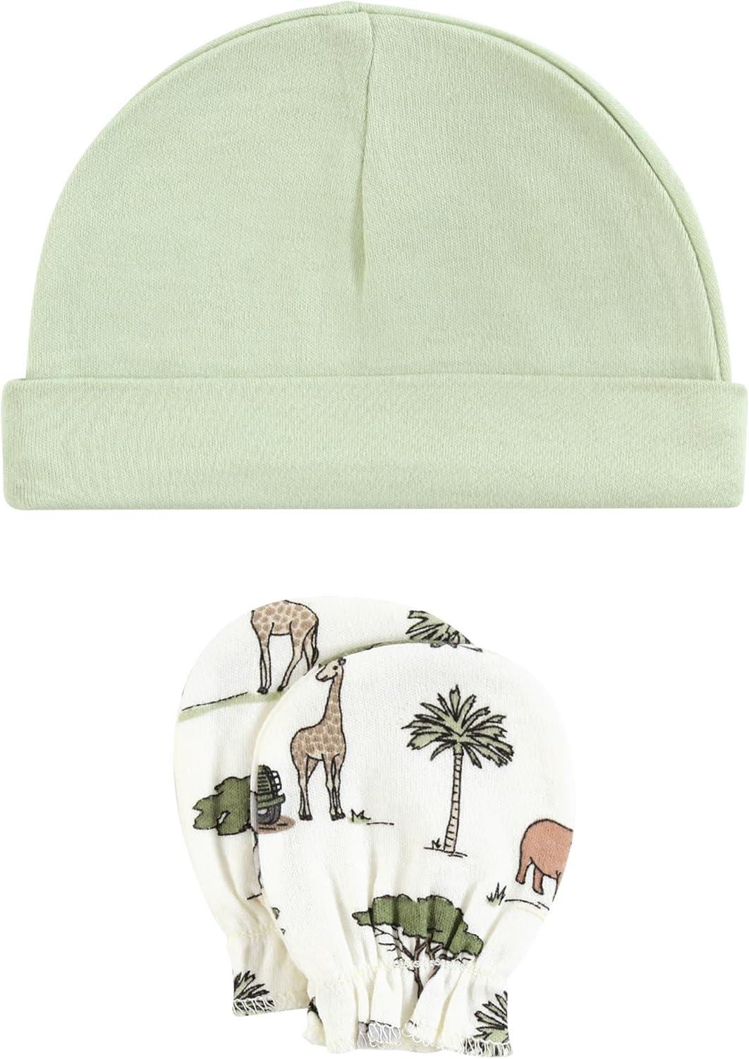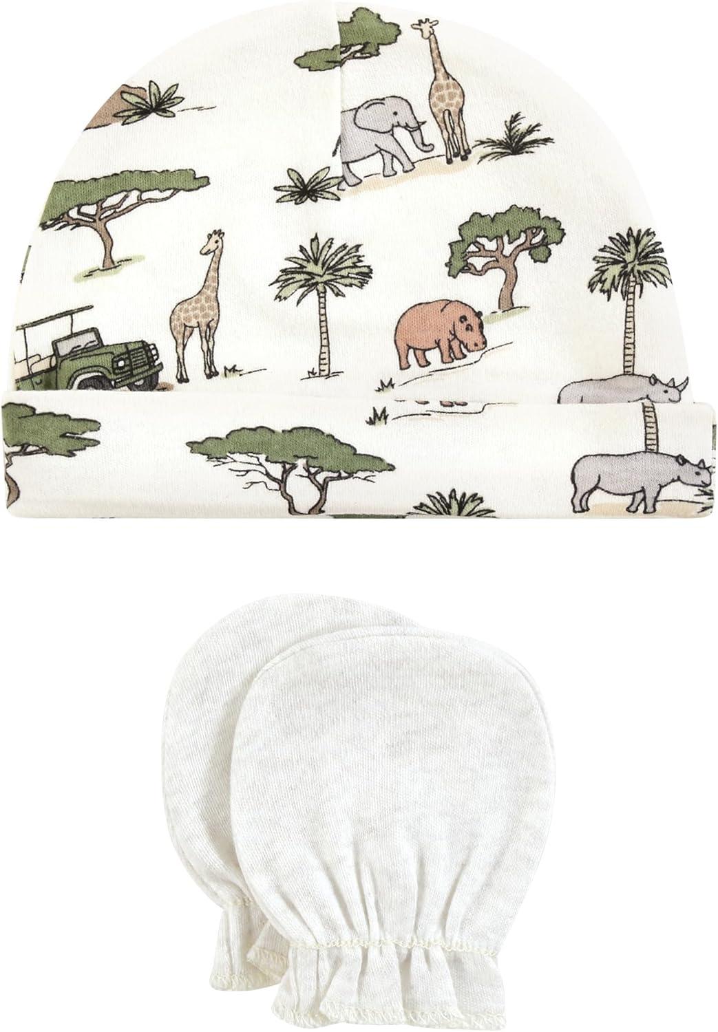 Hudson Baby Unisex Baby Cotton Cap and Scratch Mitten Set, 0-6 Months(Going on Safari)