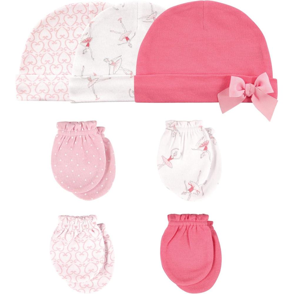 Hudson Baby Unisex Baby Cotton Cap and Scratch Mitten Set(Ballerina)
