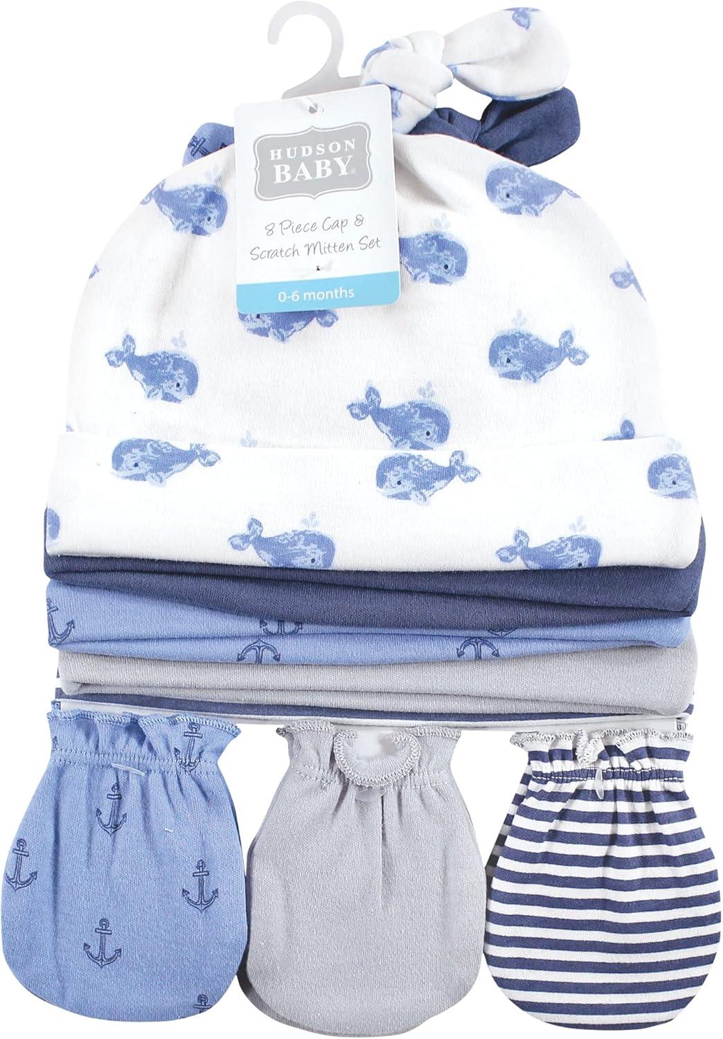 Hudson Baby cotton cap and scratch mitten set is the perfect set for your newborn. Our caps and mittens will help your little one stay warm and scratch free! Scratch mittens have elastic around the wrist so they stay snug, but not too tight. Both caps and mittens are made to be gentle on baby's skin with 100% super soft cotton. Fits ages 0-6 months.