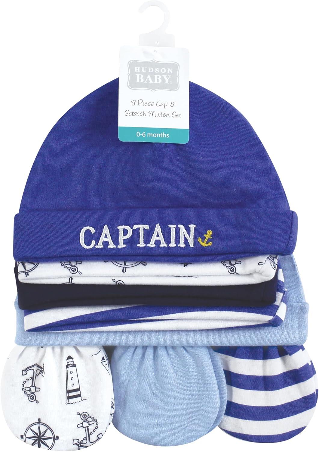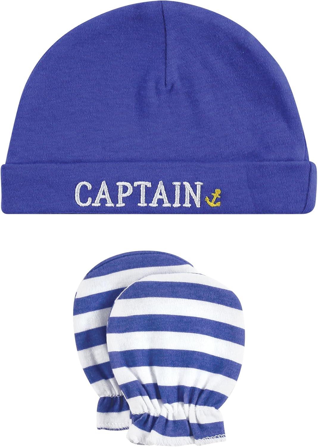 Hudson Baby Unisex Baby Cotton Cap and Scratch Mitten Set(Captain)