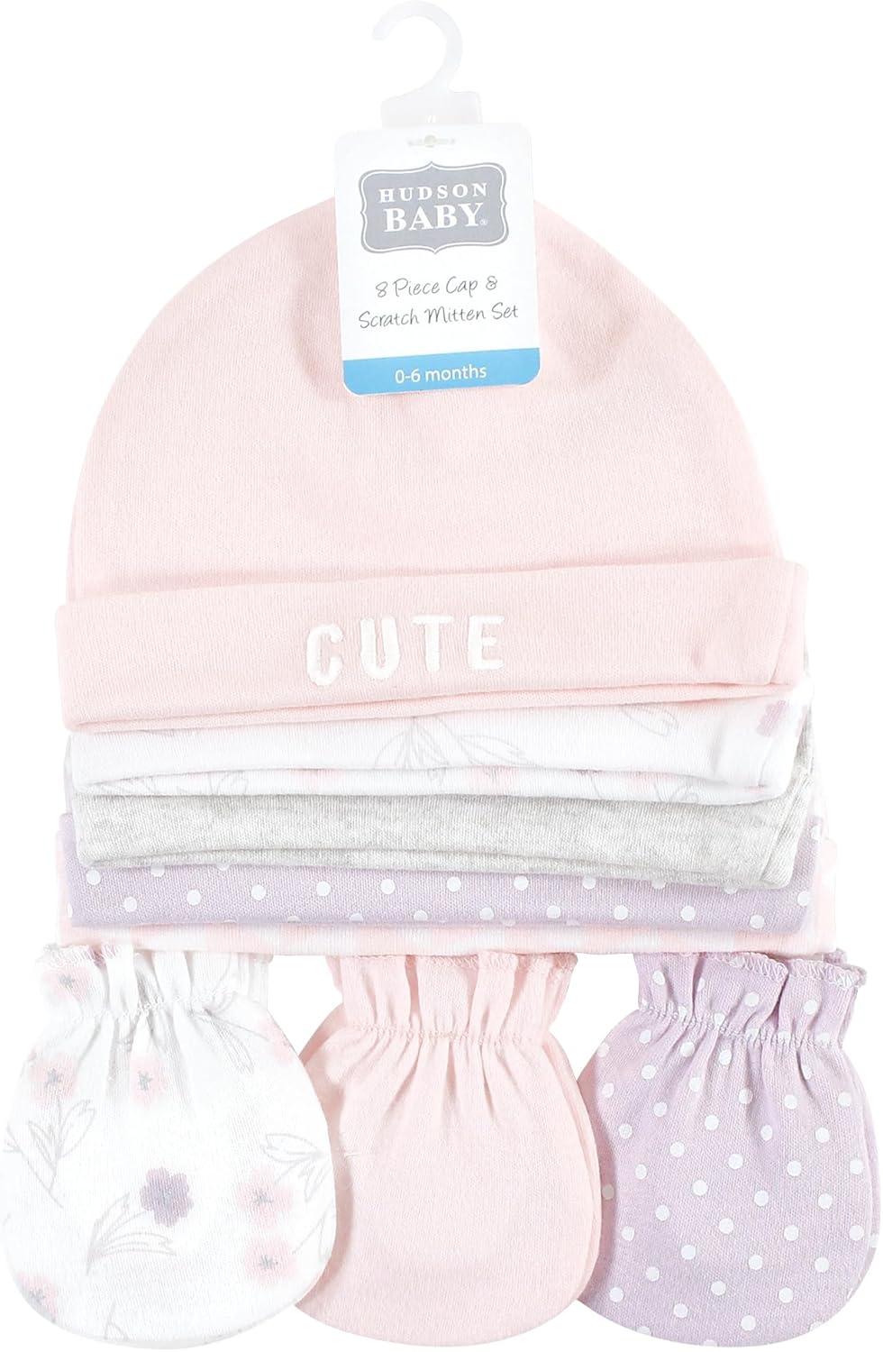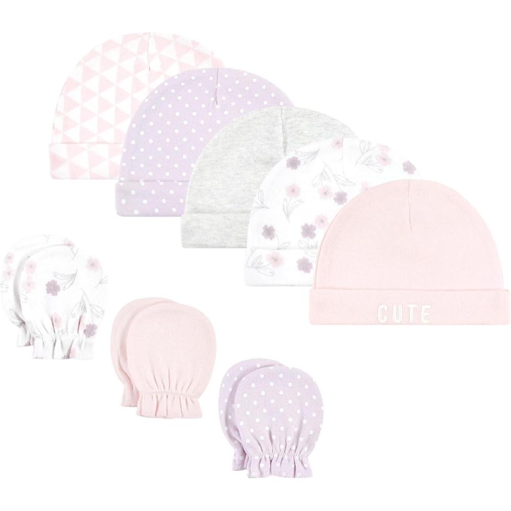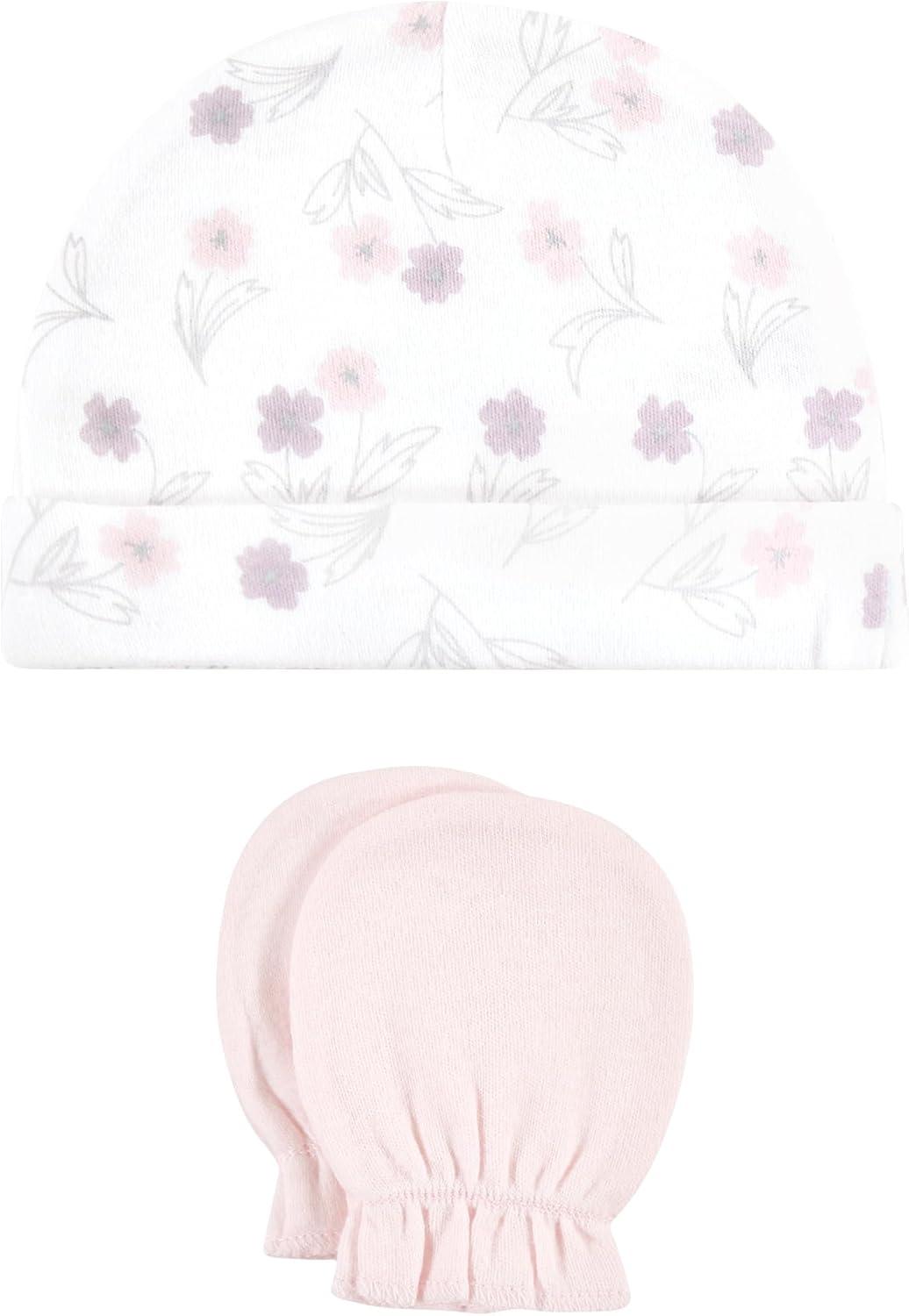 Hudson Baby Unisex Baby Cotton Cap and Scratch Mitten Set(Lavender Floral)