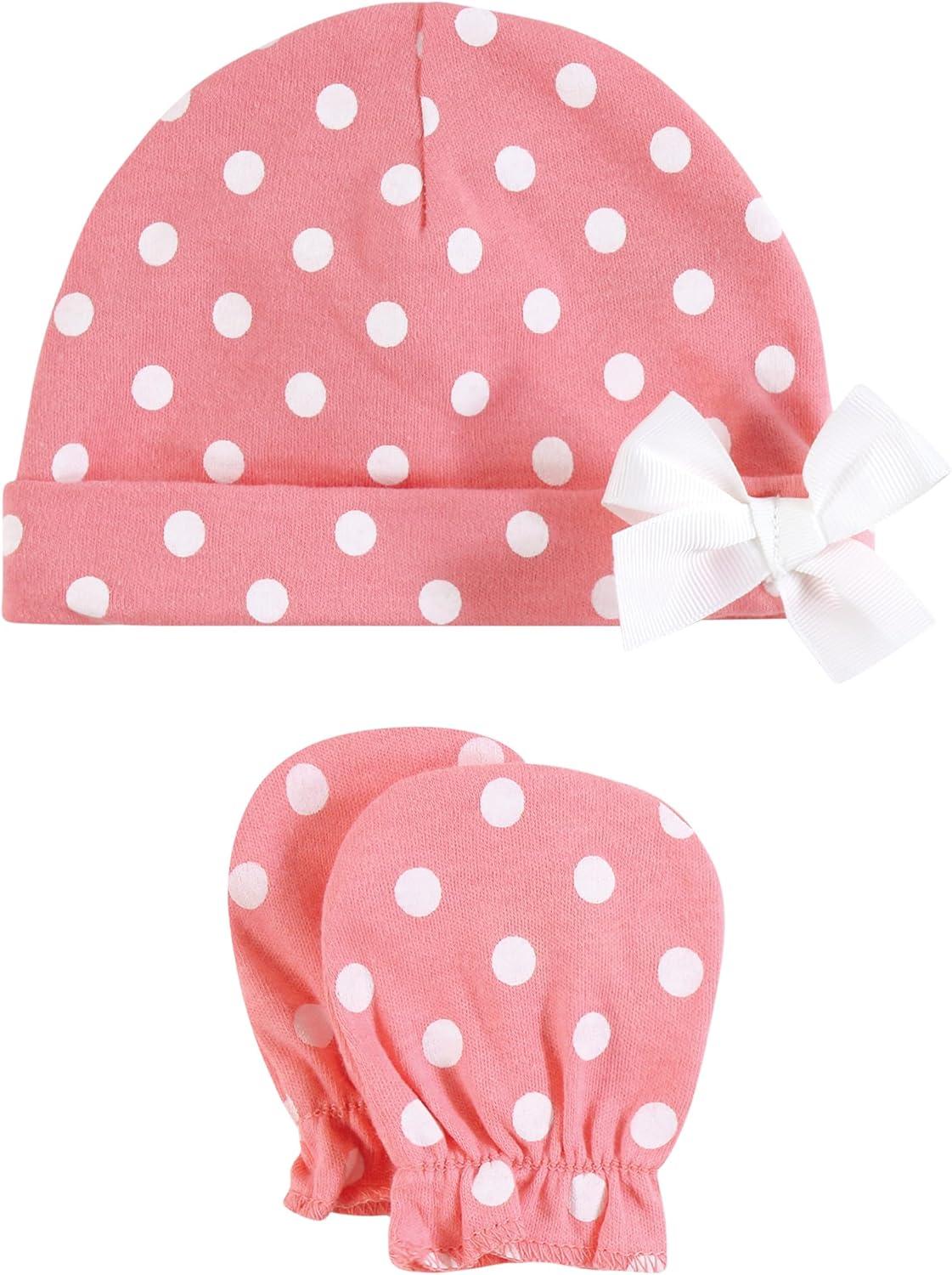 Hudson Baby cotton cap and scratch mitten set is the perfect set for your newborn. Our caps and mittens will help your little one stay warm and scratch free! Scratch mittens have elastic around the wrist so they stay snug, but not too tight. Both caps and mittens are made to be gentle on baby's skin with 100% super soft cotton. Fits ages 0-6 months.