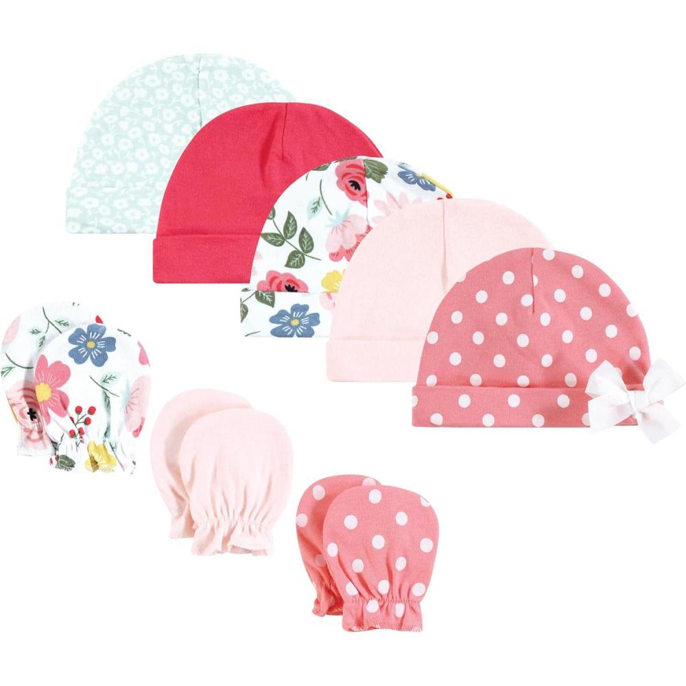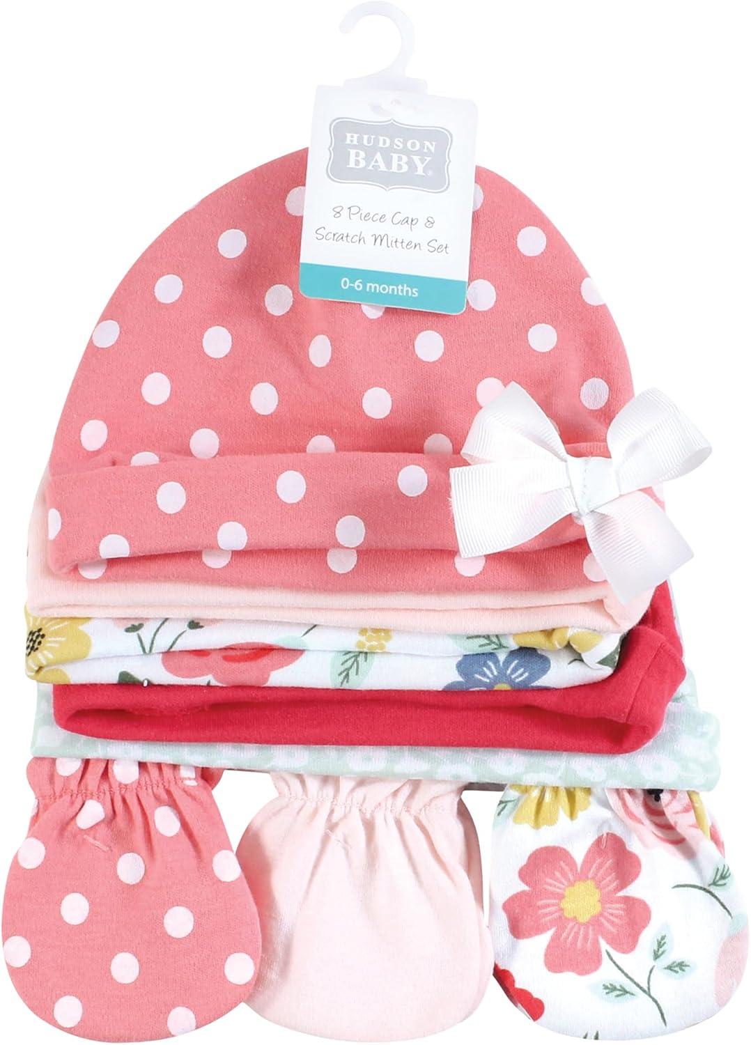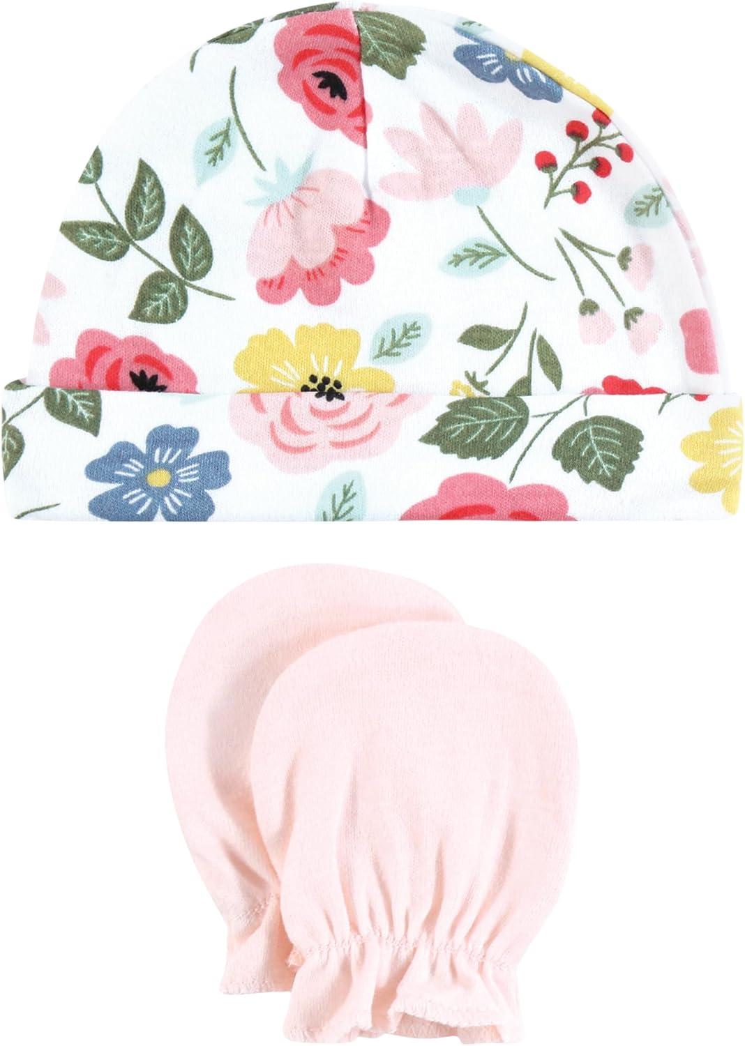 Hudson Baby Unisex Baby Cotton Cap and Scratch Mitten Set(Modern Botanical)