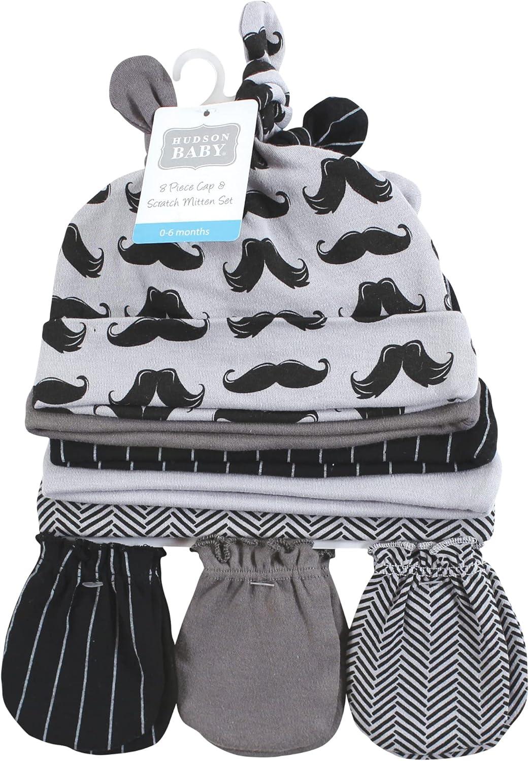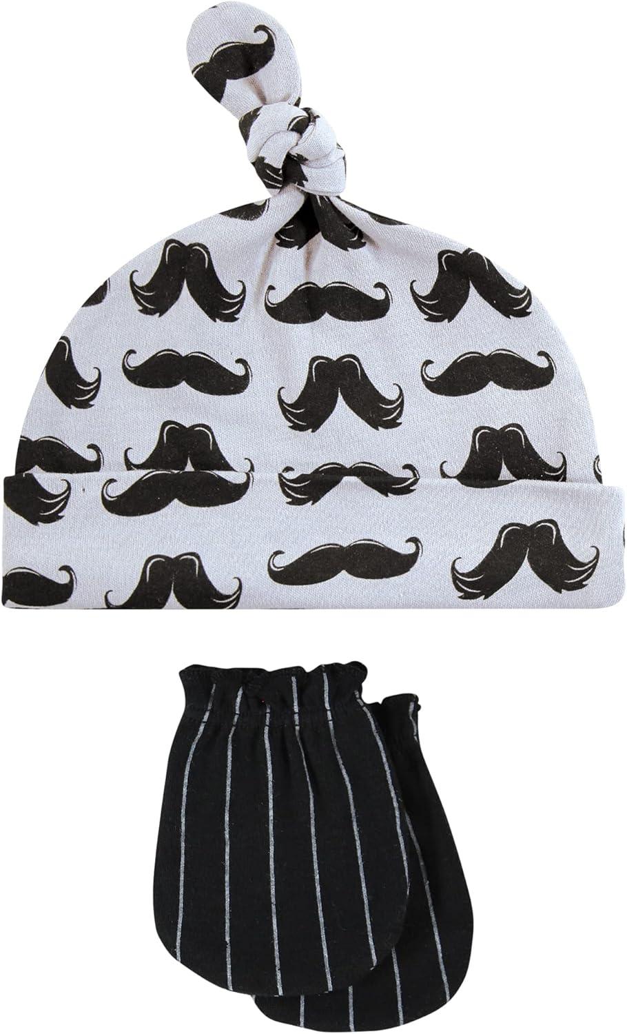 Hudson Baby Unisex Baby Cotton Cap and Scratch Mitten Set(Modern Mustache)