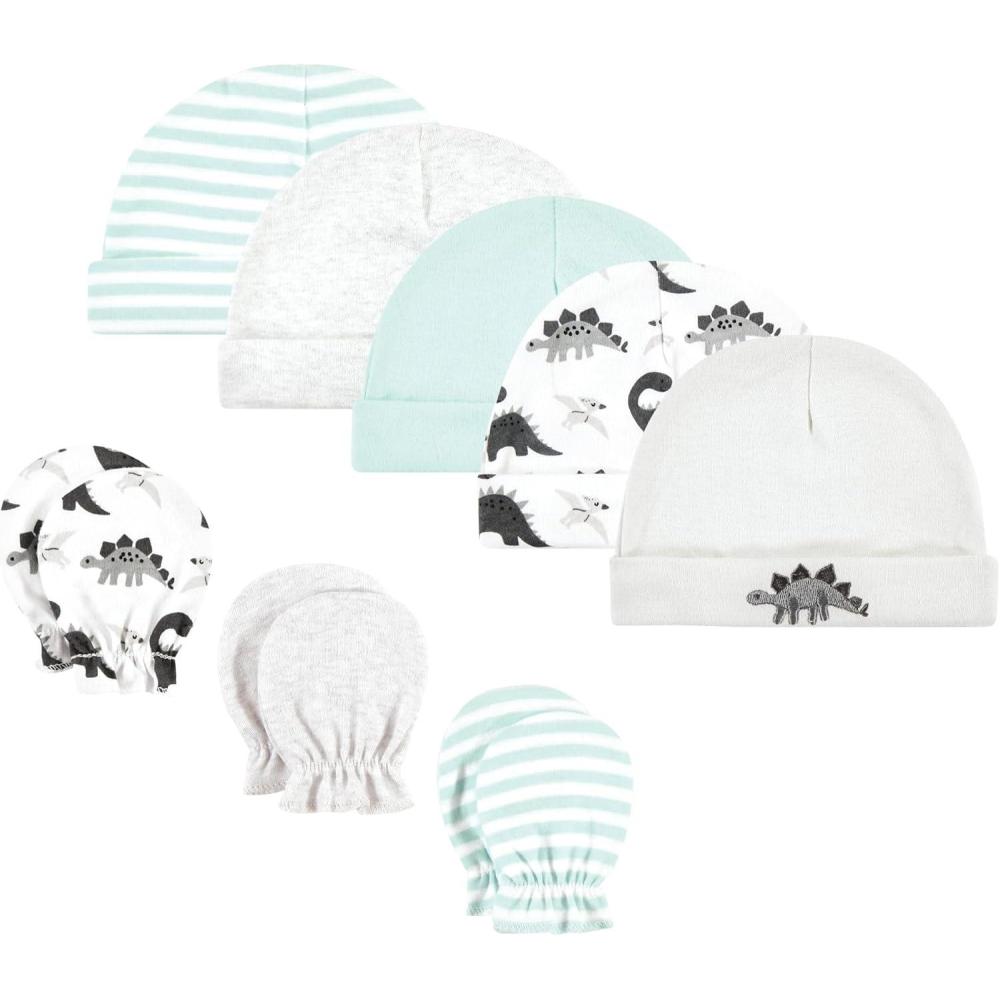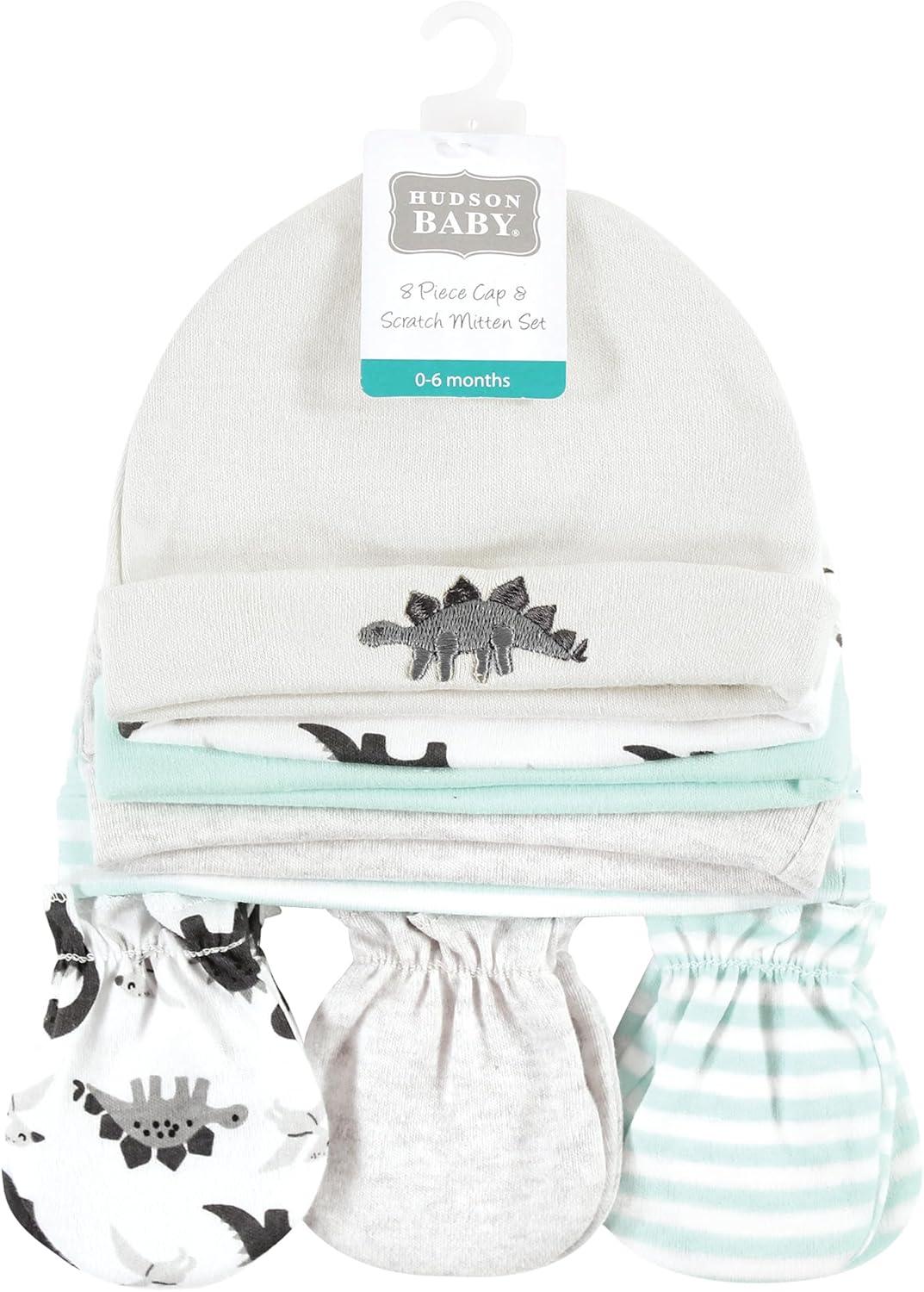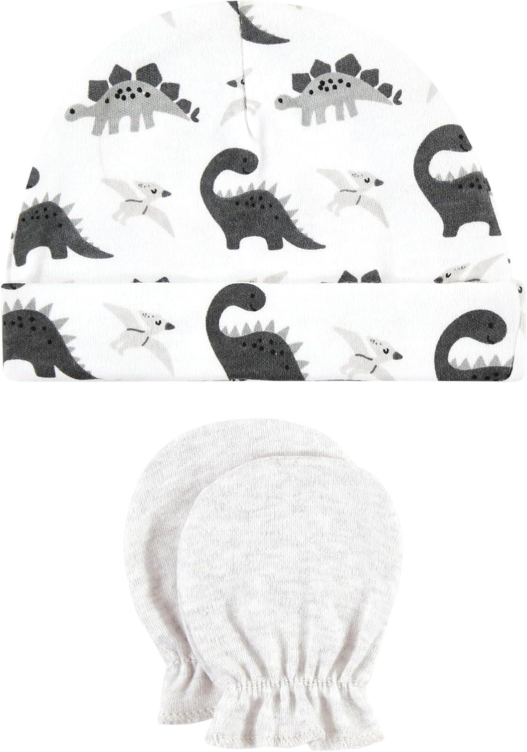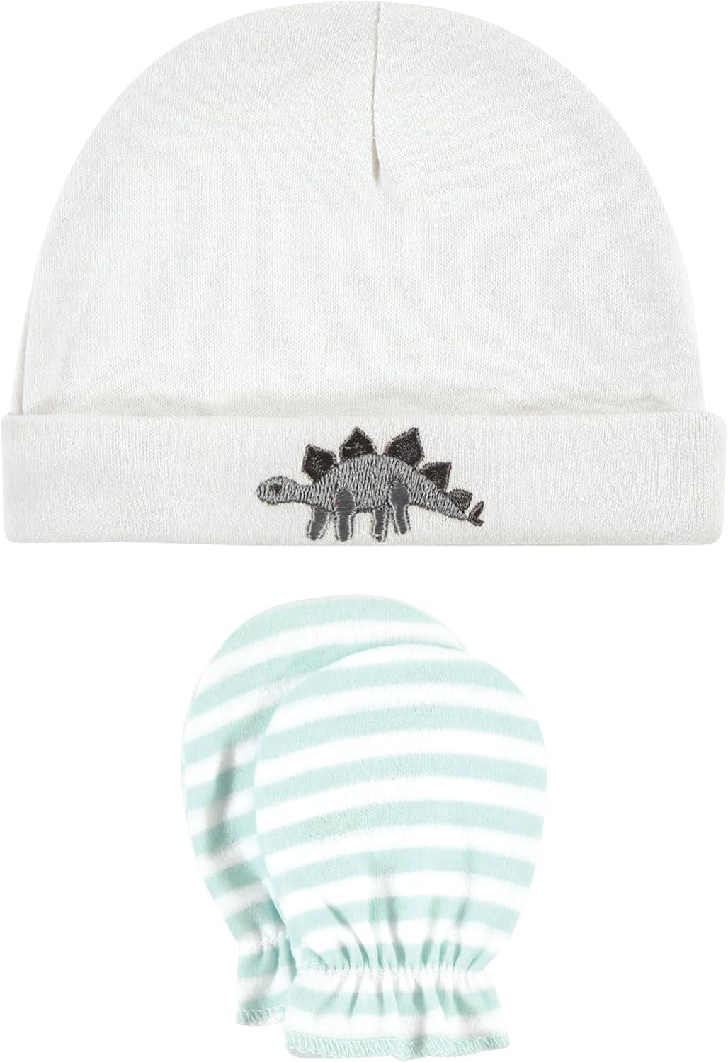 Hudson Baby Unisex Baby Cotton Cap and Scratch Mitten Set(Neutral Dino)