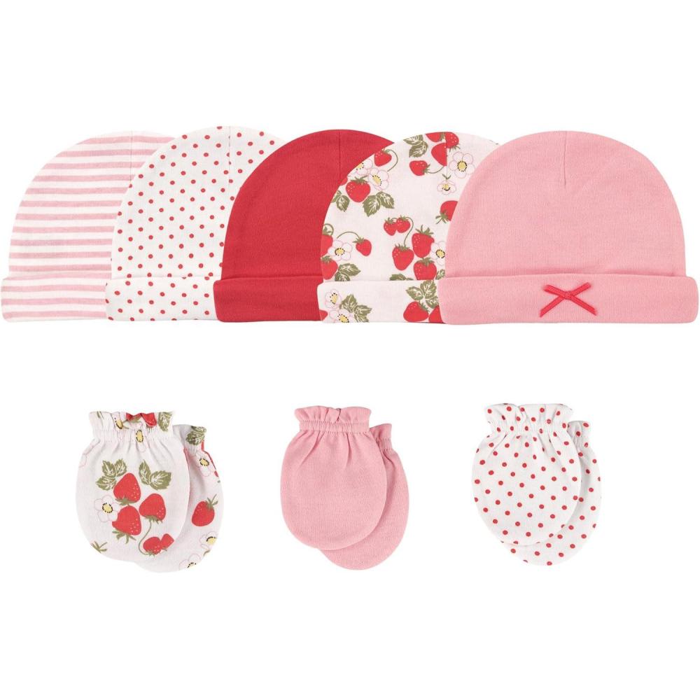 Hudson Baby cotton cap and scratch mitten set is the perfect set for your newborn. Our caps and mittens will help your little one stay warm and scratch free! Scratch mittens have elastic around the wrist so they stay snug, but not too tight. Both caps and mittens are made to be gentle on baby's skin with 100% super soft cotton. Fits ages 0-6 months.