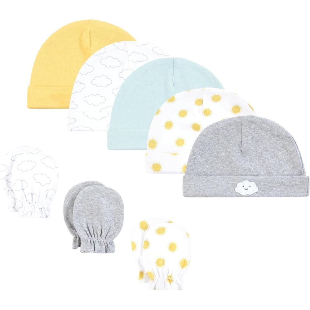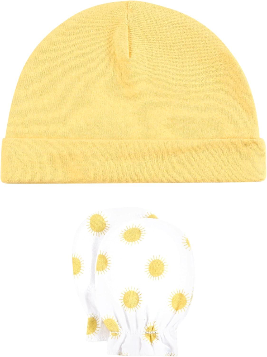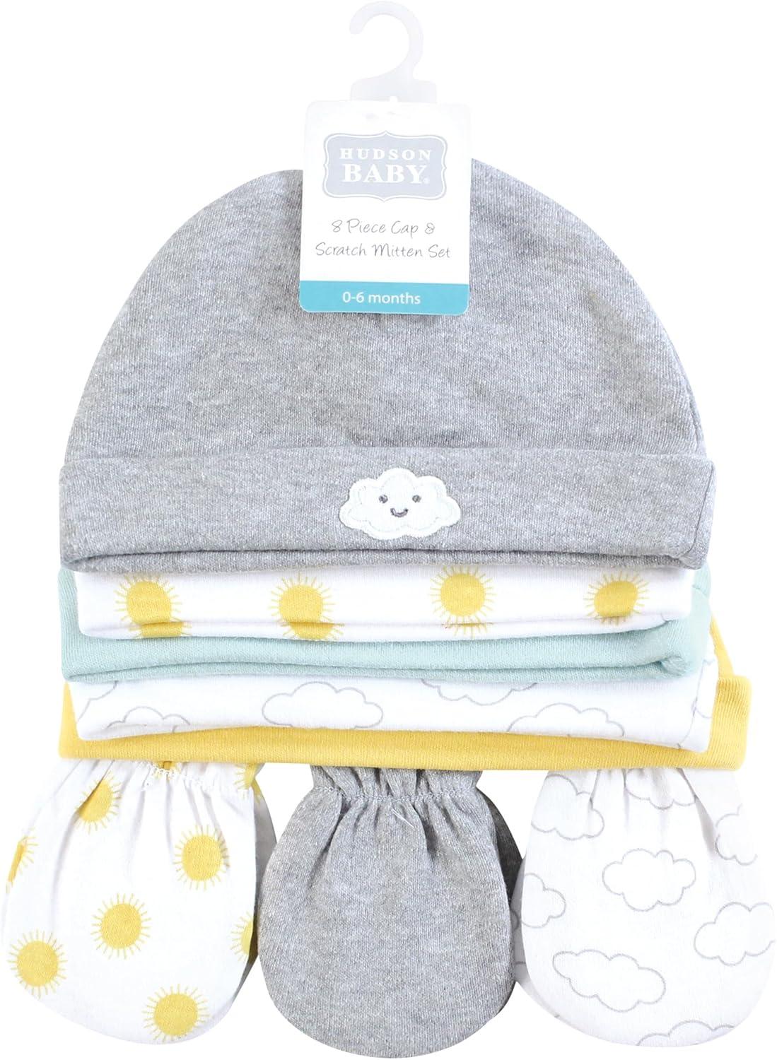 Hudson Baby Unisex Baby Cotton Cap and Scratch Mitten Set(Sunshine and Clouds)